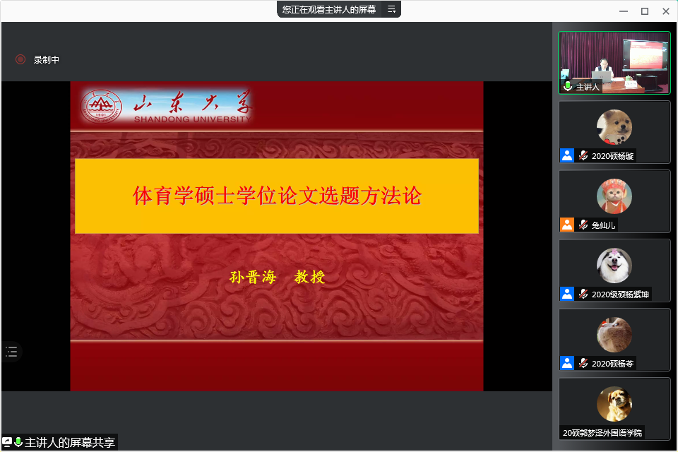 7月9日上午,Beat365官方网站Beat365官方网站党委书记、院长孙晋海教授分享了以《体育学硕士学位论文选题方法论》为题的学术讲座。他从12篇硕士学位论文选题案例开始,结合个人多年宝贵的科研经验,从选题三要、选题解读、到哪儿选、怎样选题、题目推敲五个方面,以其渊博的学识,独到的见解,展开了一场精彩的报告。在交流互动环节,孙晋海教授耐心细致地回答部分研究生导师及硕士研究生选题方面的问题。