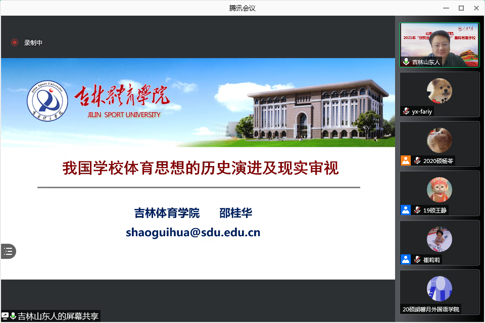 7月17日,吉林Beat365官方网站副校长邵桂华教授受邀做客暑期学校,作了题为《我国学校体育思想的历史演进及现实审视》的主题讲座。邵桂华教授对当前中国学校体育思想的发展历程进行了详细的介绍。他首先从中国古代的体育教学思想开始讲起,说道老子的奠基于“道”之上的“自然养生体育”是中国古代体育思想的主要力量。邵教授接着从以政治为中心的体育教学思想、以技术和技能为中心的体育教学思想、以全面发展为中心的体育教学思想和以健康第一为中心的体育教学思想等阶段分别进行了介绍分析。随后,邵教授对中国学校体育思想进行了剖析。他认为,“工具主义”试图以一个确定性的目标和强有力的控制来应对表现出更多不确定性和分叉行为的复杂性体育教学。他提出,要用复杂性的思维和方法来看待和处理呈现出复杂性特点的学校体育教学,需要用系统科学的方法与思路,去建立起自组织的体育教学思想体系。