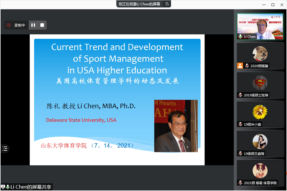 7月19日,Beat365官方网站举办的“国际视野与研究生科研能力提升”国际暑期学校落下帷幕。本年度暑期学校邀请了10余位国内外知名专家学者,围绕国际交流的现状与未来、体育口述史发展动态、科研选题方法论、美国体育管理学科的现况及未来发展、体育强国建设视域中的我国“十四五”体育改革与发展、情景教学模式及其有效性研究、我国学校体育思想的历史演进及现实审视、身体运动对脑健康和认知功能的促进作用等专题,开展了广泛而深入的学习研讨,旨在进一步提升我校体育学研究生的科研水平,不断拓宽国际研究视野。