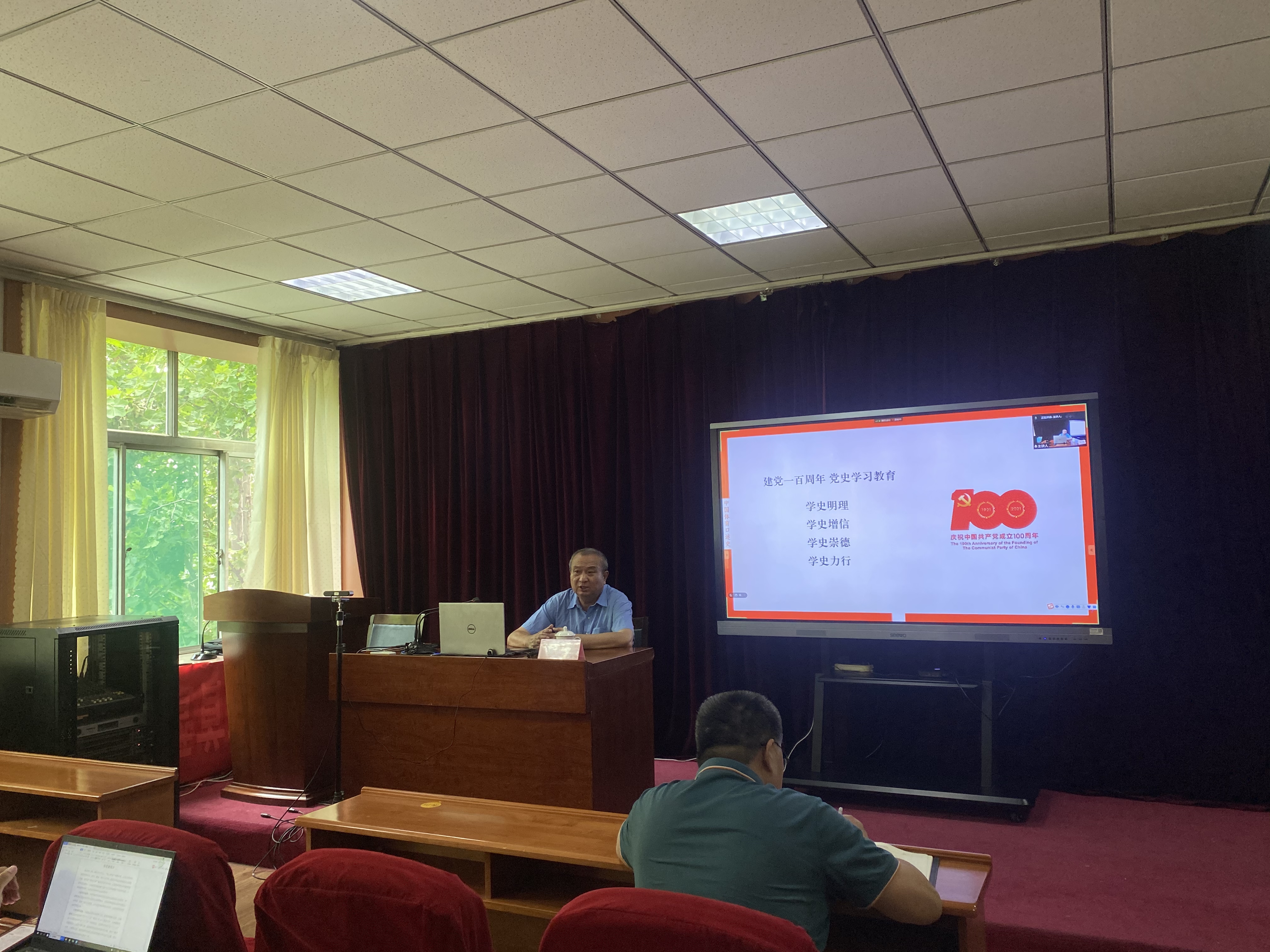 7月8日,池建教授受邀作了题为《体育口述历史在中国》的主题讲座。通过中国精神阐述的引入,分别讲述了建党100周年过程中的革命精神、社会主义建设精神、改革开放精神和新时代新时期精神。接下来,池建教授讲到体育精神,他列举了我国体育发展史上特别典型的乒乓精神、女排精神、登山精神。他认为体育作为国家事业中的一个重要组成部分,在“提高全民族素质”、“展示国家形象”、“振奋民族精神”、“保障主权维护”等方面为我国改革开放和社会主义现代化建设,为实现中华民族的伟大复兴作出了突出贡献。随后,池建教授介绍了体育口述历史的起源、开展领域、专业建设和国社科课题立项。池建教授提出体育是新中国建立发展的重要记忆,终极目标是建立中国体育记忆库。中国口述历史的资源太过丰富,需要全体体育人的工作努力。报告结束后,参会师生与池建教授进行了热烈的交流讨论。