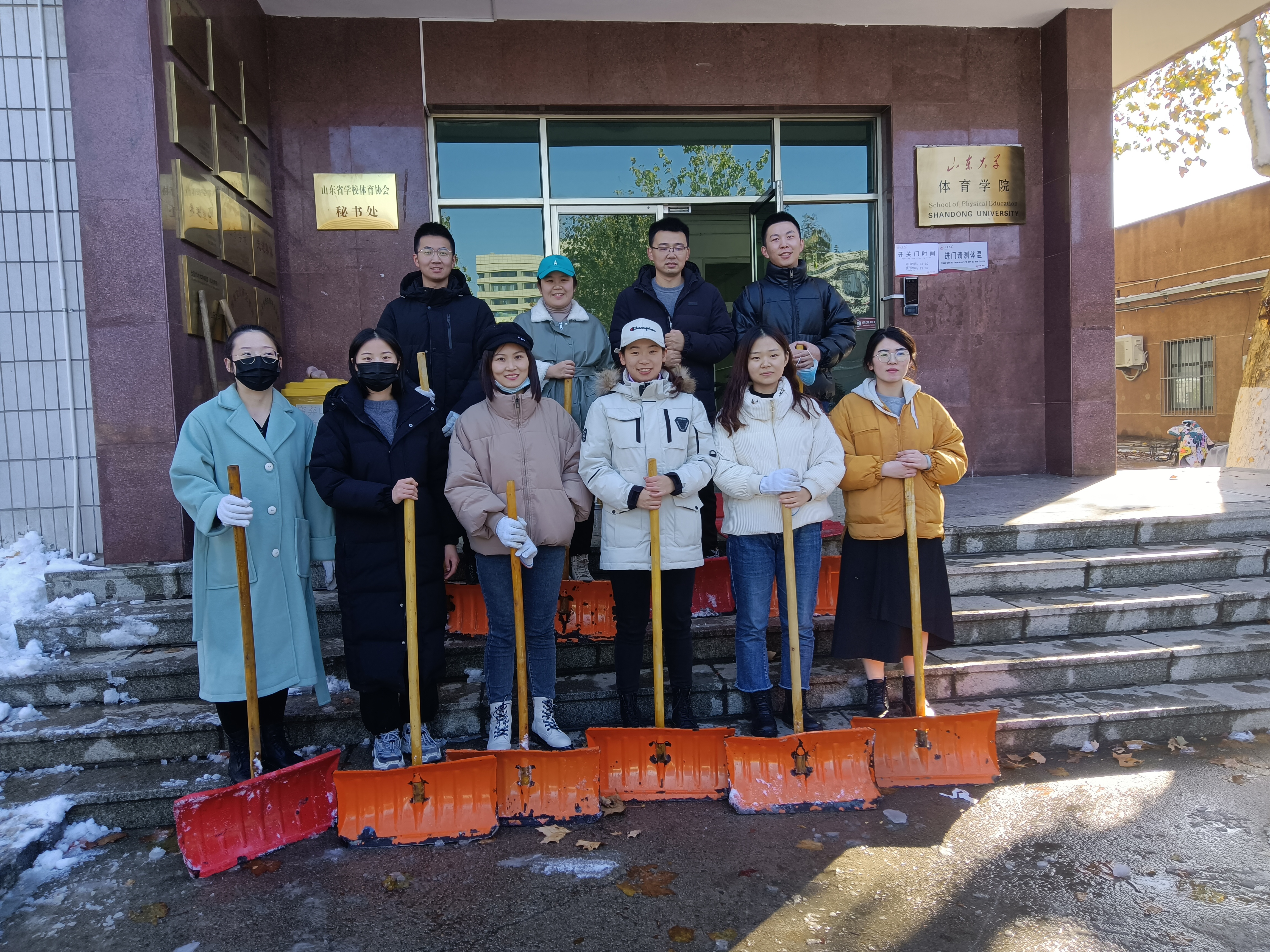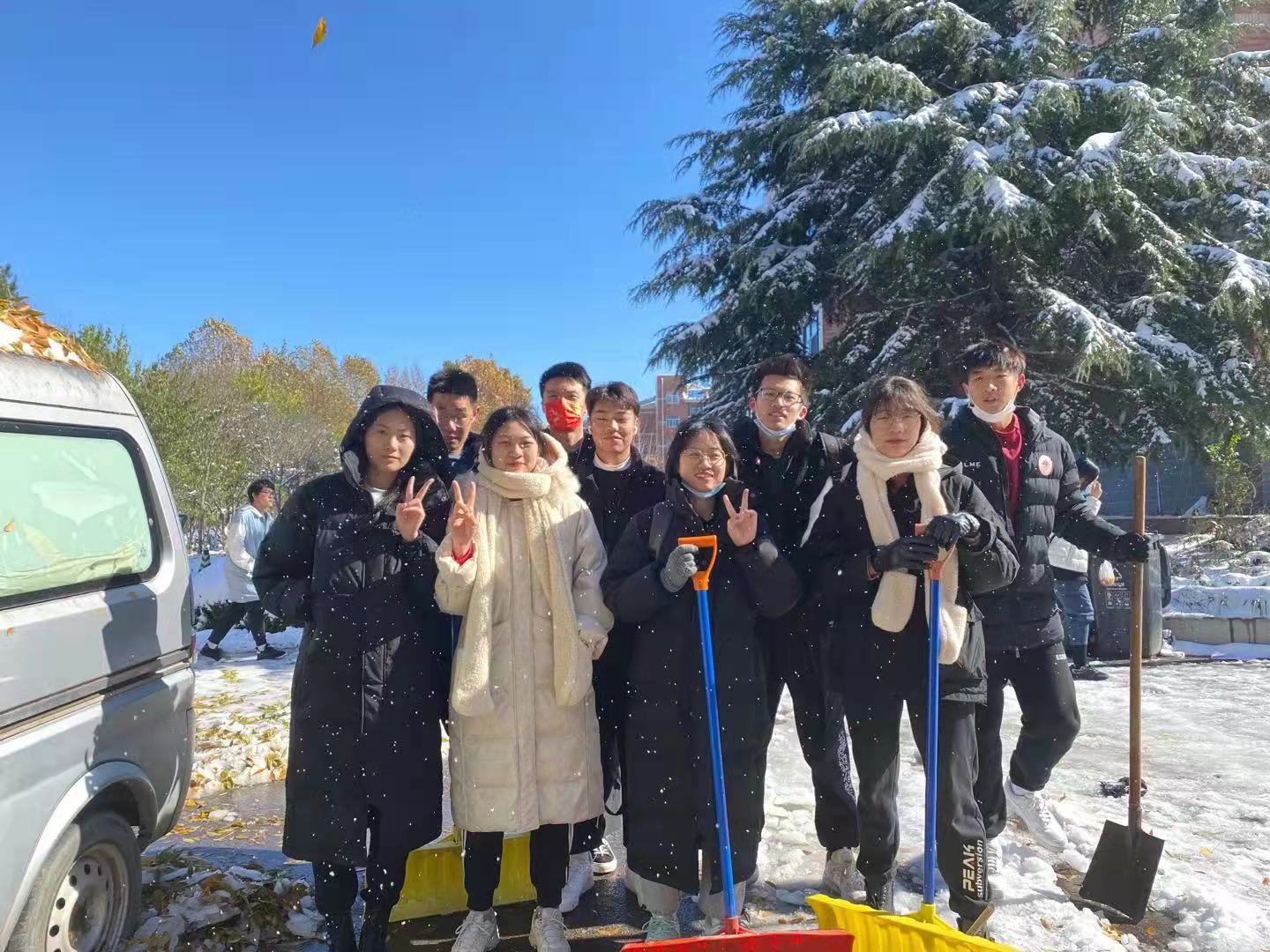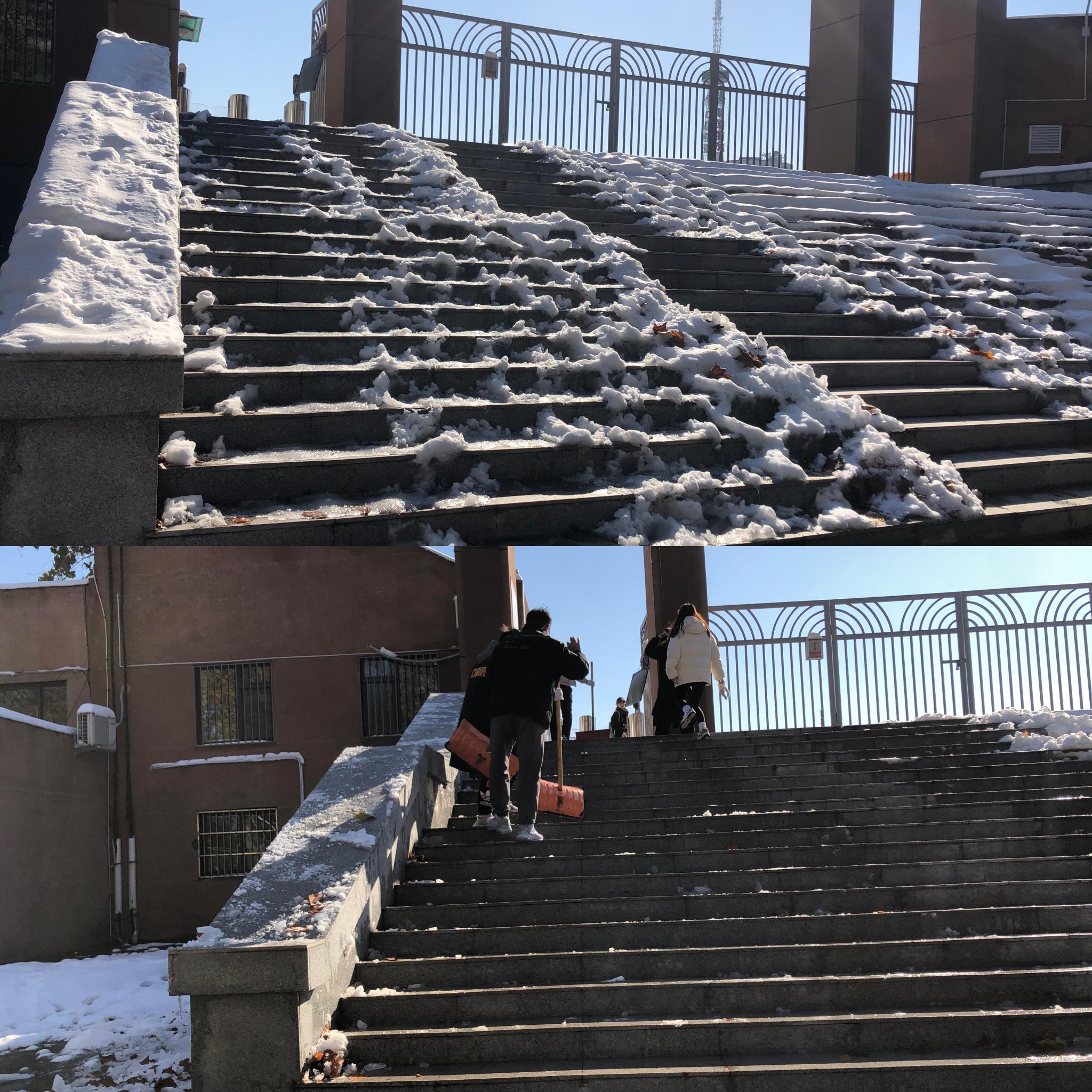 11月7日,济南突降大雪,皑皑白雪装点了美丽校园,但也对师生学习生活造成不便。Beat365官方网站本科生、研究生党支部、团支部积极响应学校和学院号召,动员全体党员、团员,以实际行动参与校园清洁活动,在兴隆山校区和千佛山校区开展了铲雪破冰志愿服务活动。