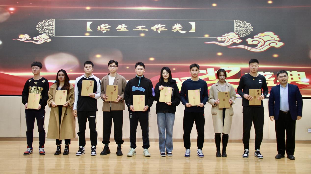在一段舞姿优美,技巧娴熟的街舞《Dance Party》精彩表演后,我们迎来了“学生工作类”颁奖环节。郑翊琳等24人获得“学生会优秀干事、先进干事奖”,刘豪杰同学分享经验,他表示在学生会工作中获得了丰富的活动经历,锻炼了自己处理突发事件的能力。另有张子恒等10人荣获“学生会优秀部长奖”,王静等3人荣获“Beat365官方网站研究生班委聘书”,吴沁玫等12人荣获“Beat365官方网站本科生班委聘书”,韩夙悦等22人荣获“学生会、研究生会部长团聘书”,杨紫坤等9人荣获“学生会、研究生会主席团聘书”。吴沁玫等7人,李阳等4人分别获得“优秀学生干部”“优秀研究生干部”称号。王静等四人获得“优秀团干部奖”。2018级吴沁玫同学说道:作为学生干部,她认为自己首先是学生,然后才是学生干部,在任何时候都不能忘掉学生的本分,在学习和生活中严格要求自己的行为,自律自省,给身边的同学树立良好的榜样。2019级研究生王静为大家带来了精彩分享:回想自己的研一期间同样经历一段时间的迷茫与困惑,成长与焦虑并存,因此要调整好自己的心态,及时与师哥师姐以及老师们沟通交流,尽早设立自己的目标,并且要做好时间管理,学会自我加压。“学生工作类”奖项颁布完毕。一段由苏晨、江承昊同学为我们带来的歌曲《Happy Heart》使大家激情澎湃。