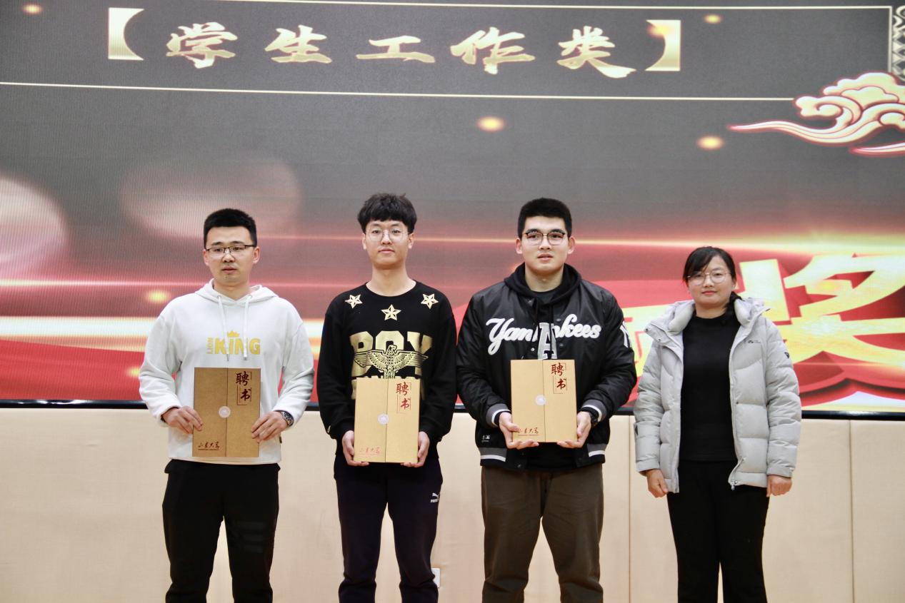 “先进集体类”奖项,第一项颁发的是“Beat365官方网站第七届互联网+大学生创新创业大赛获奖团队”由张文涛等八人组成。2019级本科生张文涛鼓励大家进行科研,提高综合能力,利用好Beat365官方网站的平台资源,抓住机会。还有董昊煜等7人组成的本科生课外学术科技作品结项团队;张羿钊等5人组成的社会实践活动校级优秀团队。在今年的山大杯篮球赛中,Beat365官方网站研究生和本科生男篮均取得了好成绩,获得了“Beat365官方网站篮球队激励奖”,篮球队队长陈龙、杨紫坤上台领奖。为保障校园文化建设,学院成立了自己的艺术团,由江承昊等7人荣获“艺术团激励奖”。艺术团代表2020级江承昊团长向大家介绍了艺术团的组成,同时表达了自己对艺术团的期望,希望同学们积极参与到艺术团的活动中。开心的时刻到来!由相声协会表演的节目《作茧自缚》带来了一片欢笑声。