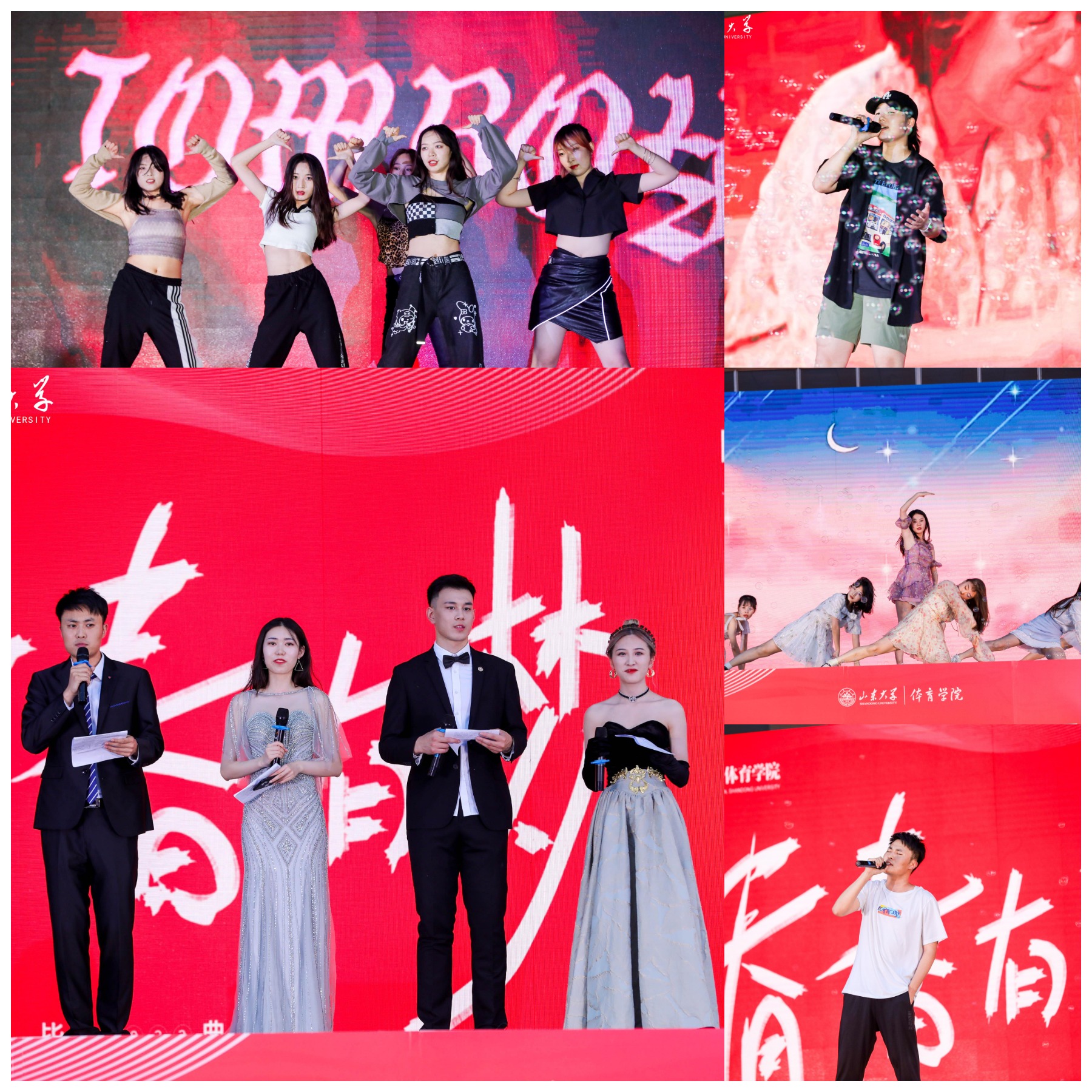 毕业典礼结束后,毕业晚会在风雨操场如约而至。毕业晚会在热烈的欢呼声和掌声中拉开了帷幕。首先是走红毯环节,毕业生们身穿华服,在红毯上展现自己在大学期间收获的勇气与自信。毕业晚会由张佳辉、王嘉琦、郭印玺和葛泓丽主持,以“缘聚一体 星耀四方”为主题,分为游戏环节、演出环节和彩蛋环节三部分。游戏与彩蛋点燃了大家晚会活动的热情,团舞、独奏等演出青春飞扬,热情洋溢,展示了新一代体院人的青春面貌,赢得了全场同学们的阵阵掌声,整场晚会精彩纷呈,气氛热烈。最后,一首《凤凰花开的路口》,让2022届毕业生的点滴回忆汇聚成心头的阵阵暖流,将晚会氛围推到最高潮。晚会在歌声与“毕业快乐”的祝福声中圆满落下帷幕。