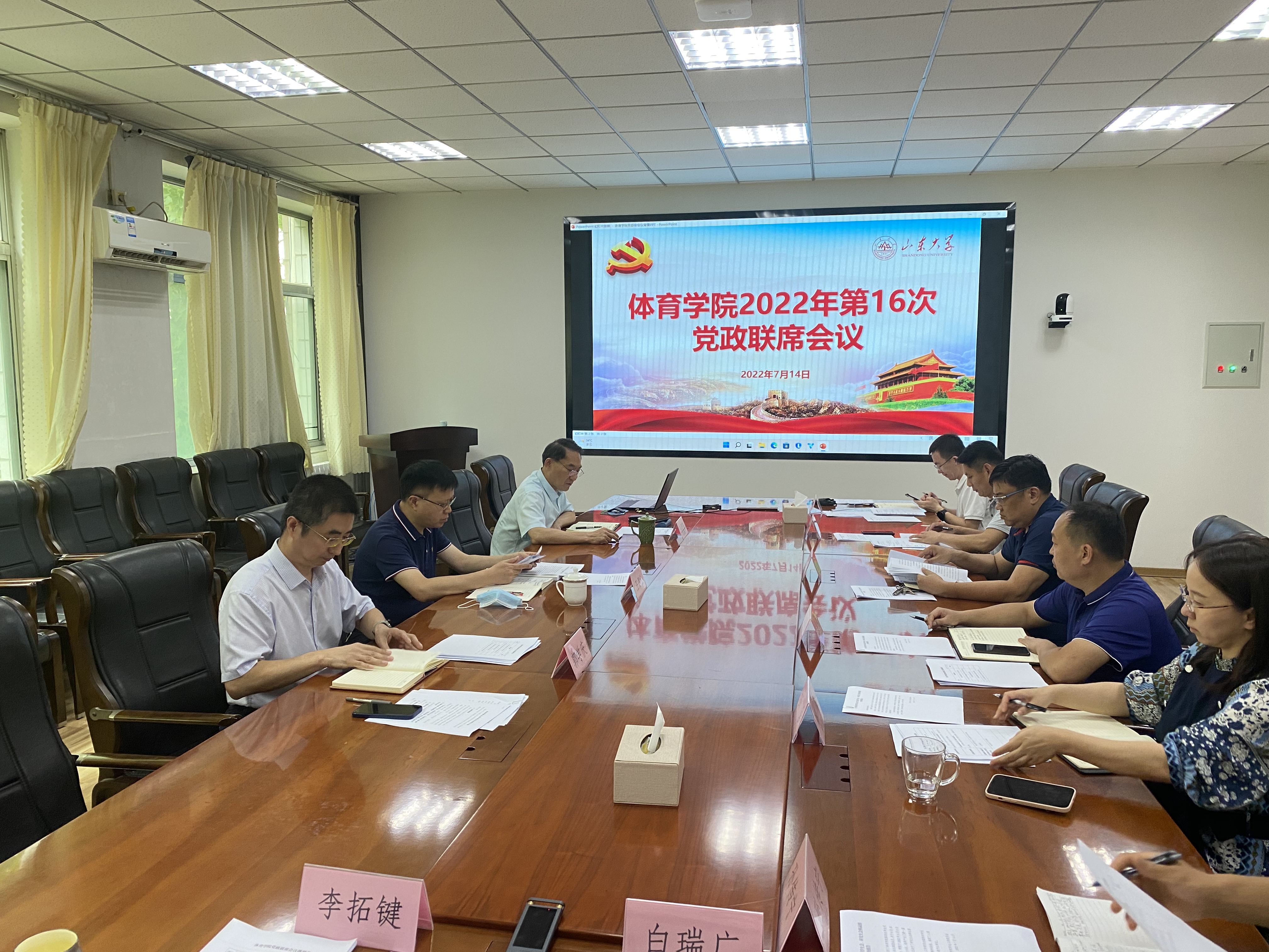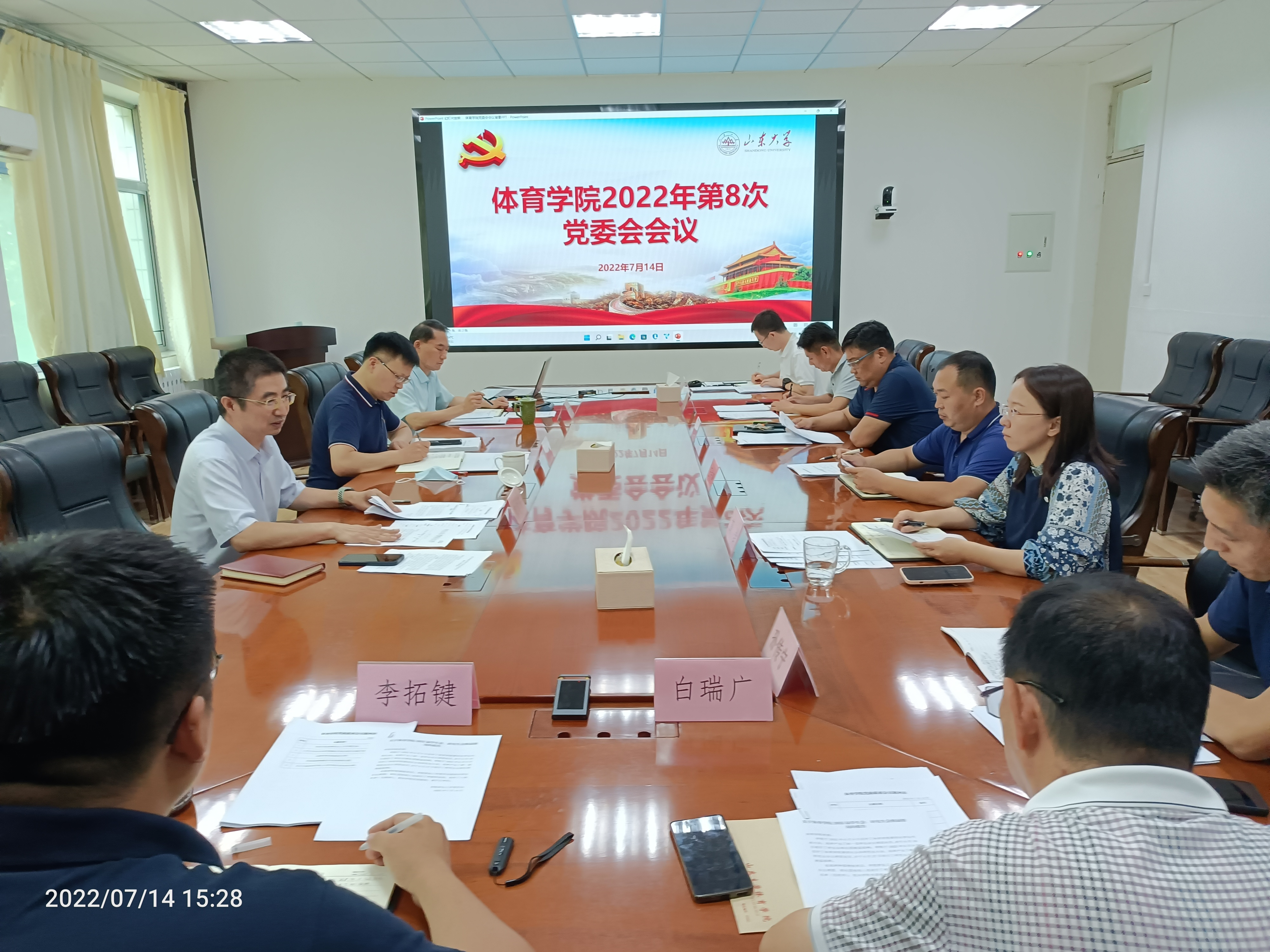 7月14日,Beat365官方网站2022年第8次党委会会议和2022年第16次党政联席会议在千佛山校区召开。学校党委副书记王君松列席会议。