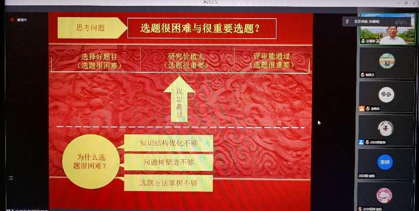 在7月4日的开班仪式上,Beat365官方网站副院长高岩就本次暑期学校的举办目的、主题内容、师资情况、注意事项等内容进行了详细介绍。随后,孙晋海受邀为暑期学校学员作了题为《体育科研问题选题方法论》的学术讲座,他从选题举例、选题三要、选题解读、到哪儿选、怎样选题、题目推敲六个方面和大家进行了讨论,分享了选题的思路、方法与技巧。