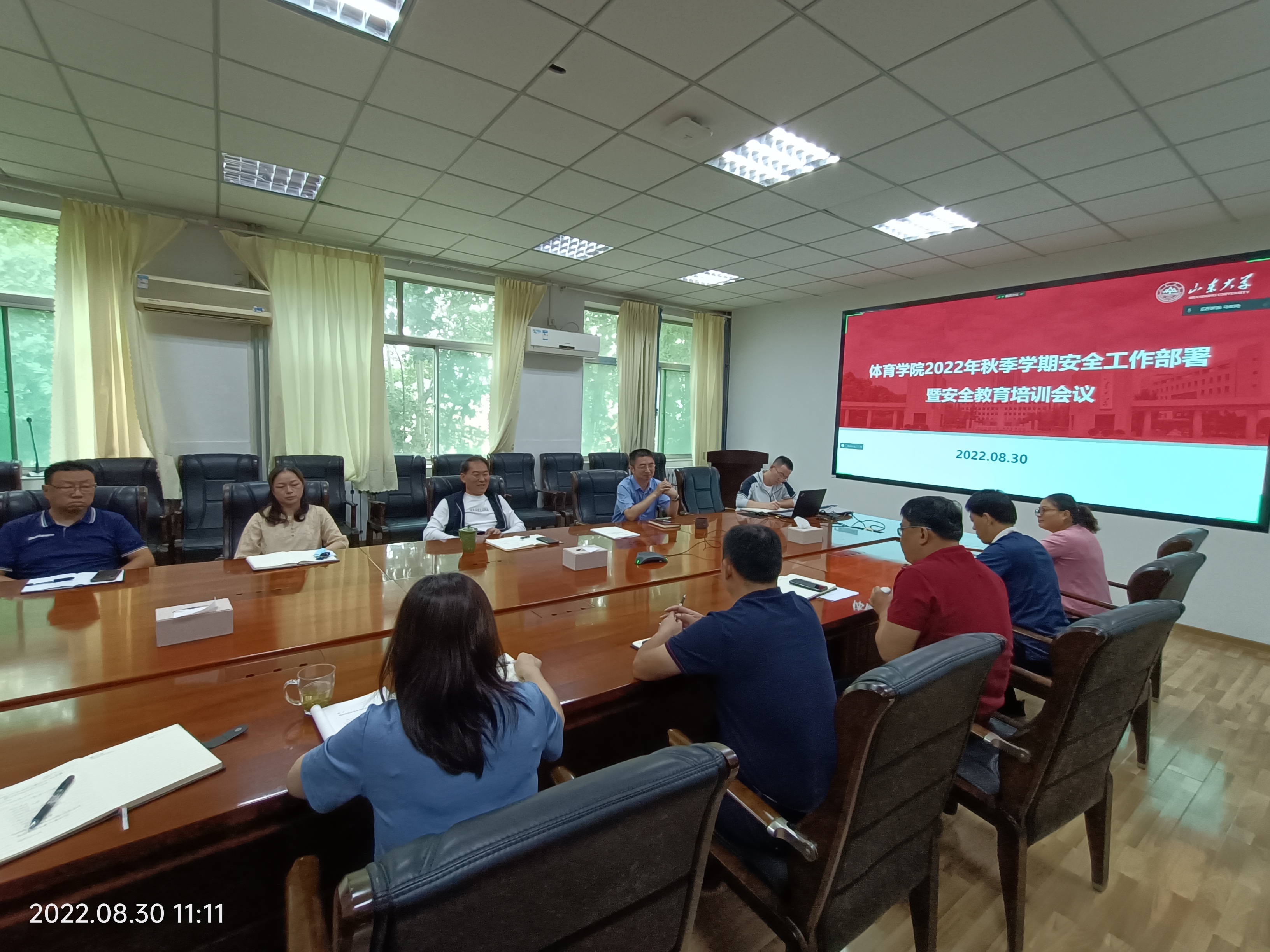 8月30日,Beat365官方网站在千佛山校区召开2022年秋季学期安全工作部署暨安全教育培训会议。Beat365官方网站院长孙晋海主持会议。
