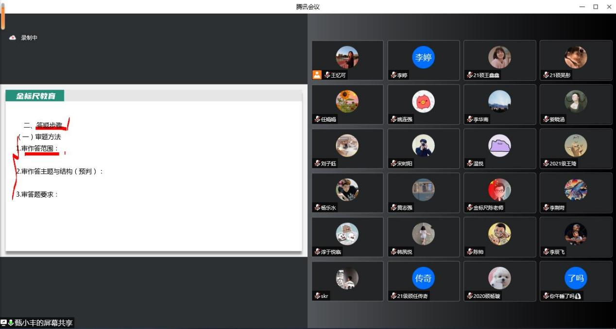讲座伊始,甄来时首先介绍了本次讲座的课程学习目标,随后从申论能力考查、答题要素与基本题型两个方面向同学们普及了申论的基础知识,并以具体题目为例,介绍了公务员考试的题目类型及备考策略。接着,他提出了申论答题的三大步骤:全面审题、资料阅读、答案组织。最后,他对审题方法、资料阅读、答案组织等技巧进行了分享。
