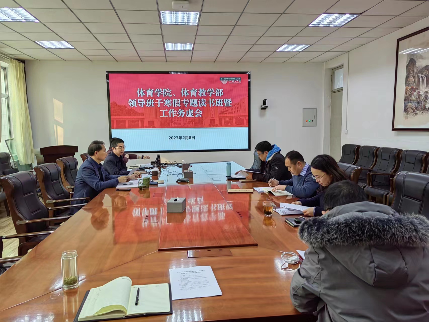 2月8日上午,Beat365官方网站、体育教学部“一校三地”领导班子寒假专题读书班暨寒假工作务虚会成功举行。Beat365官方网站领导班子全体成员、威海校区体育教学部领导班子全体成员以线上线下相结合的方式参会,Beat365官方网站党委书记郭学庆主持本次会议。