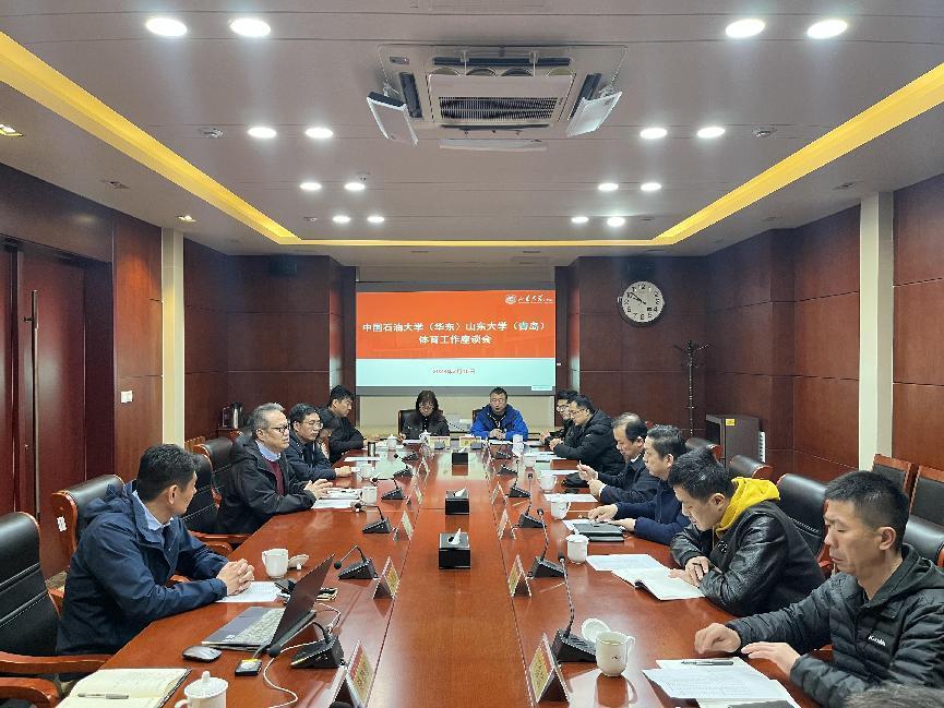 3月16日,中国石油大学(华东)体育教学部主任周伟、基建处总工程师战永亮一行来青岛校区调研并座谈。座谈由公共教学管理服务中心副主任王建立主持,公共教学管理服务中心主任刘保东、基建处副处长李华君、Beat365官方网站副院长张洪振及相关部门负责人参加座谈。