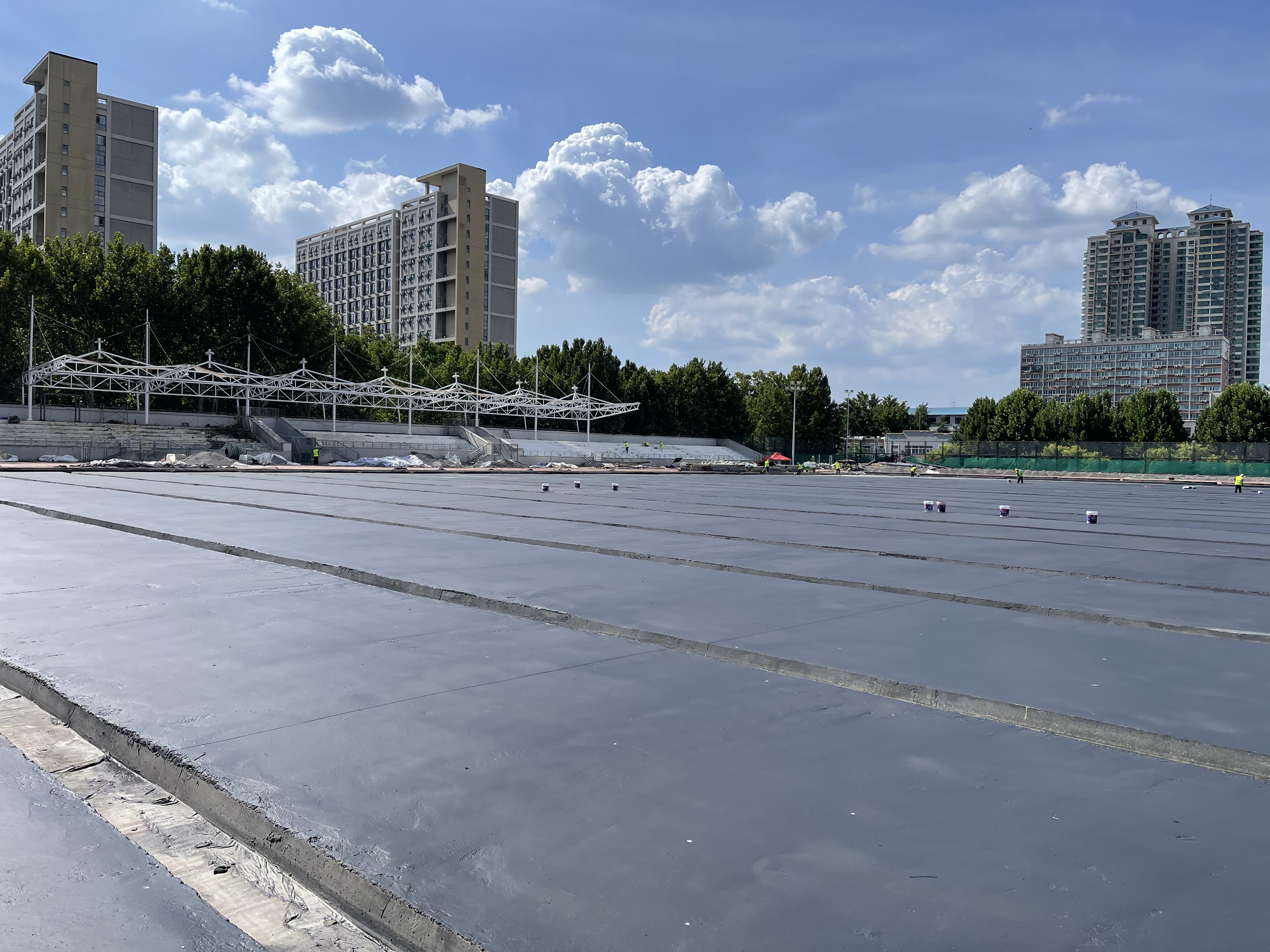 在中心校区,检查组重点检查了体育馆和田径场。学校综合体育馆暑期各项开放工作顺利开展,先后举办了公益培训班、添翼工程课程、智能车赛事等活动。调研还检查了中心校区田径场建设进度,查看了现场施工、防水层施工、配套房间建设、电子计时小屋建设、主席台施工、车库顶层施工等主要环节,详细了解了建设进度与工程质量情况。郭学庆指出,中心校区田径场是学校服务师生的重点工程项目,要求施工方抢抓工期、保证安全、保质保量地完成项目施工任务,体育场馆管理中心做好监管和服务工作。