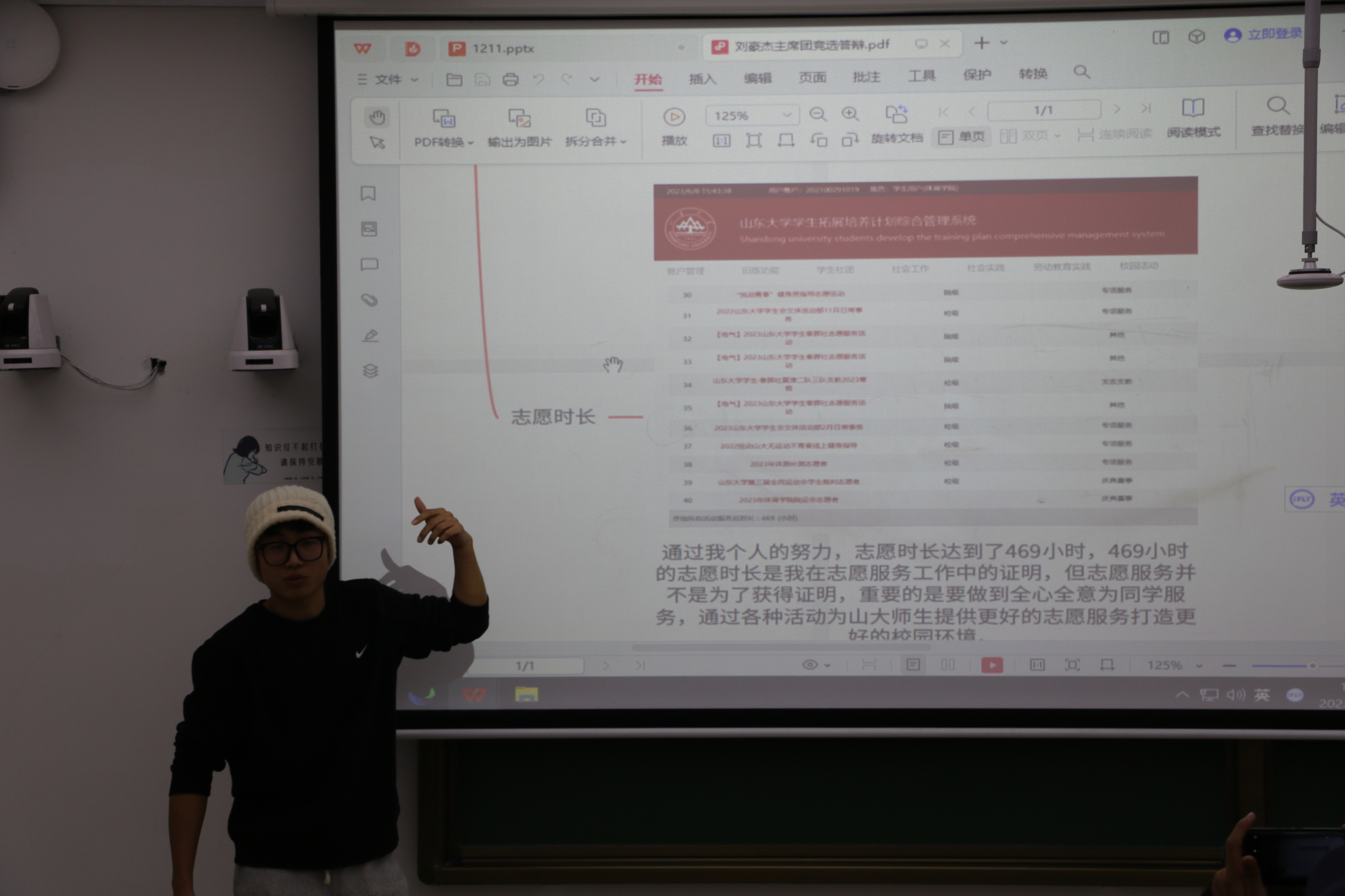 大一优秀志愿代表梁一冰,凭着自己对志愿服务的热情,踊跃参加各种志愿服务活动,分享了自己参加校篮球裁判协会、齐鲁交通学院、微电子学院、校青志联等组织的各种志愿活动的经历。他认为,参加志愿服务可以让新同学增加自信心、提升语言表达和人际交往能力、学习新技能,对大学生的成长十分有益。