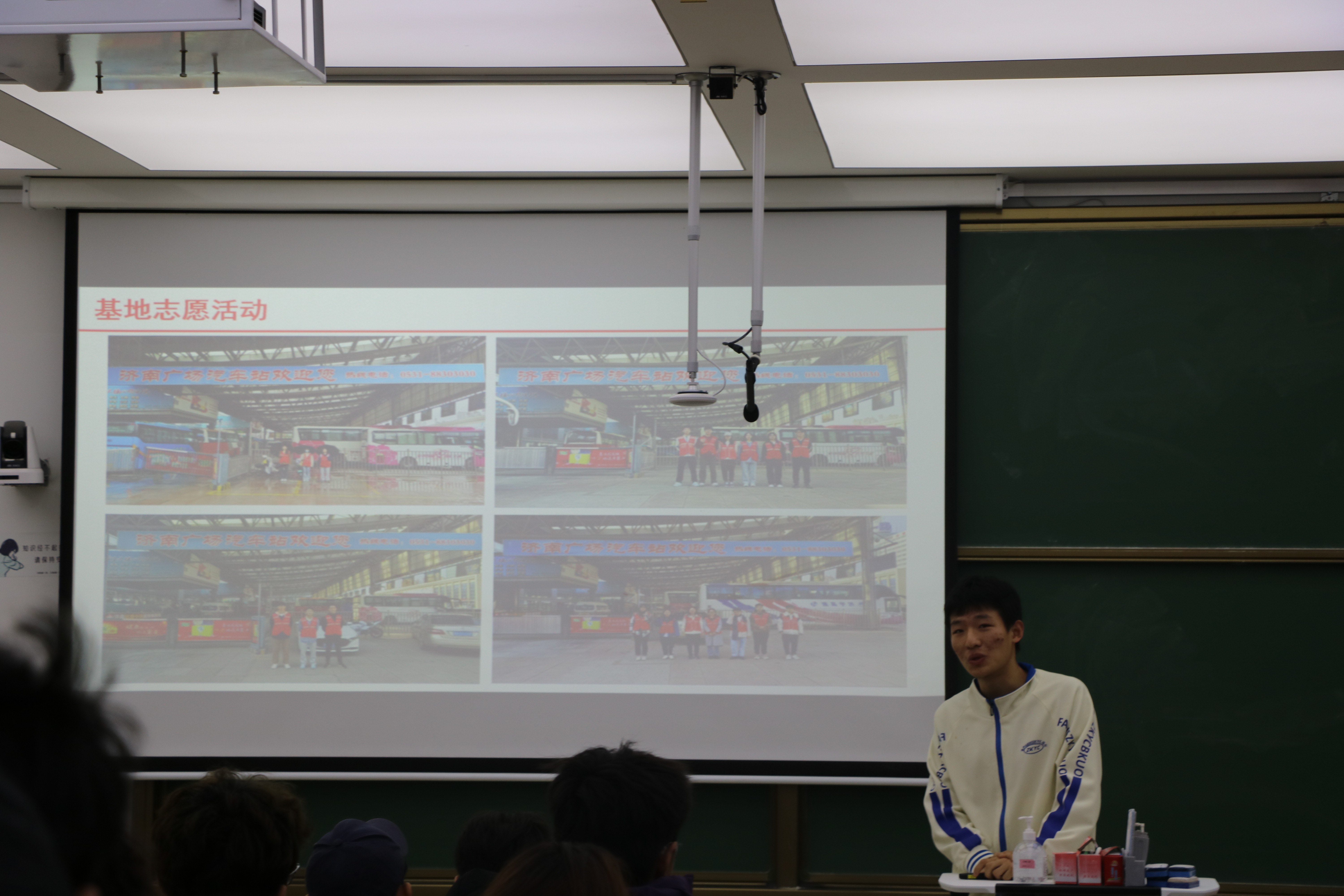 优秀志愿者甘文浩,通过与同学互动交流,引导大家体会在校期间志愿服务对我们大学生成长的意义。他说,大学期间不单单是学习,这些志愿活动是大学生提升自己的重要方式,大学生要跳出书本,通过积极参加志愿服务活动,学会从社会服务与实践的角度来看待问题。