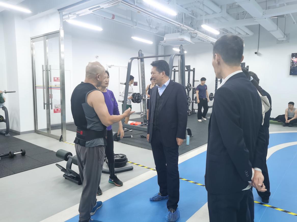 曹现强先后来到游泳馆、健身中心和篮排球馆,重点考察了游泳馆设施设备条件、日常运行管理以及安全保障措施等情况,深入了解场馆运行过程中存在的问题,并与现场锻炼师生进行亲切交谈。