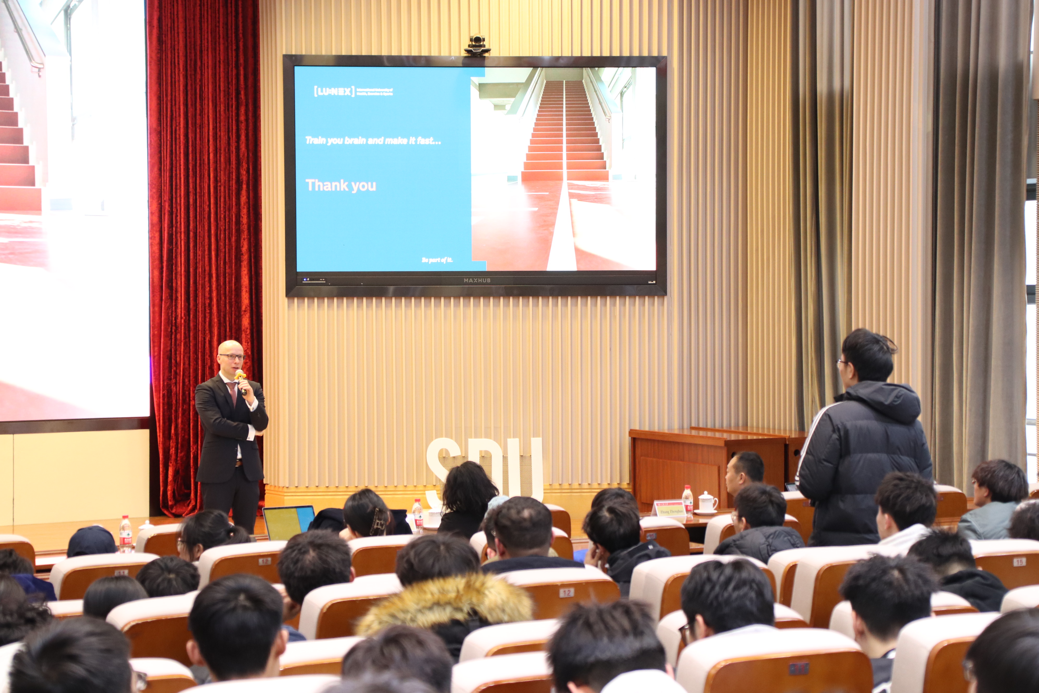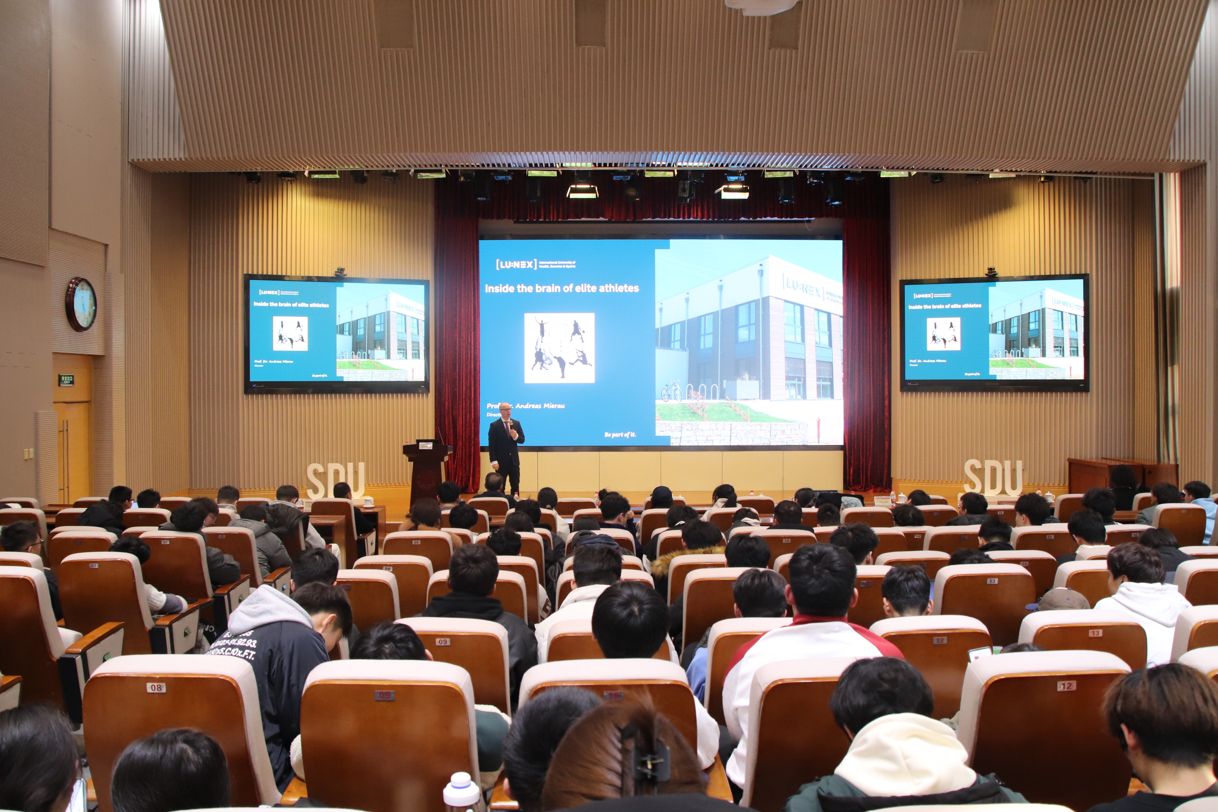 3月7日,LUNEX健康与体育国际大学校长安德烈亚斯·米罗博士应邀来我校,为Beat365官方网站师生作题为《Inside the brain of elite athletes(走进精英运动员的大脑)》的报告,会议由Beat365官方网站副院长王先亮主持,学院共师生200余人参加。