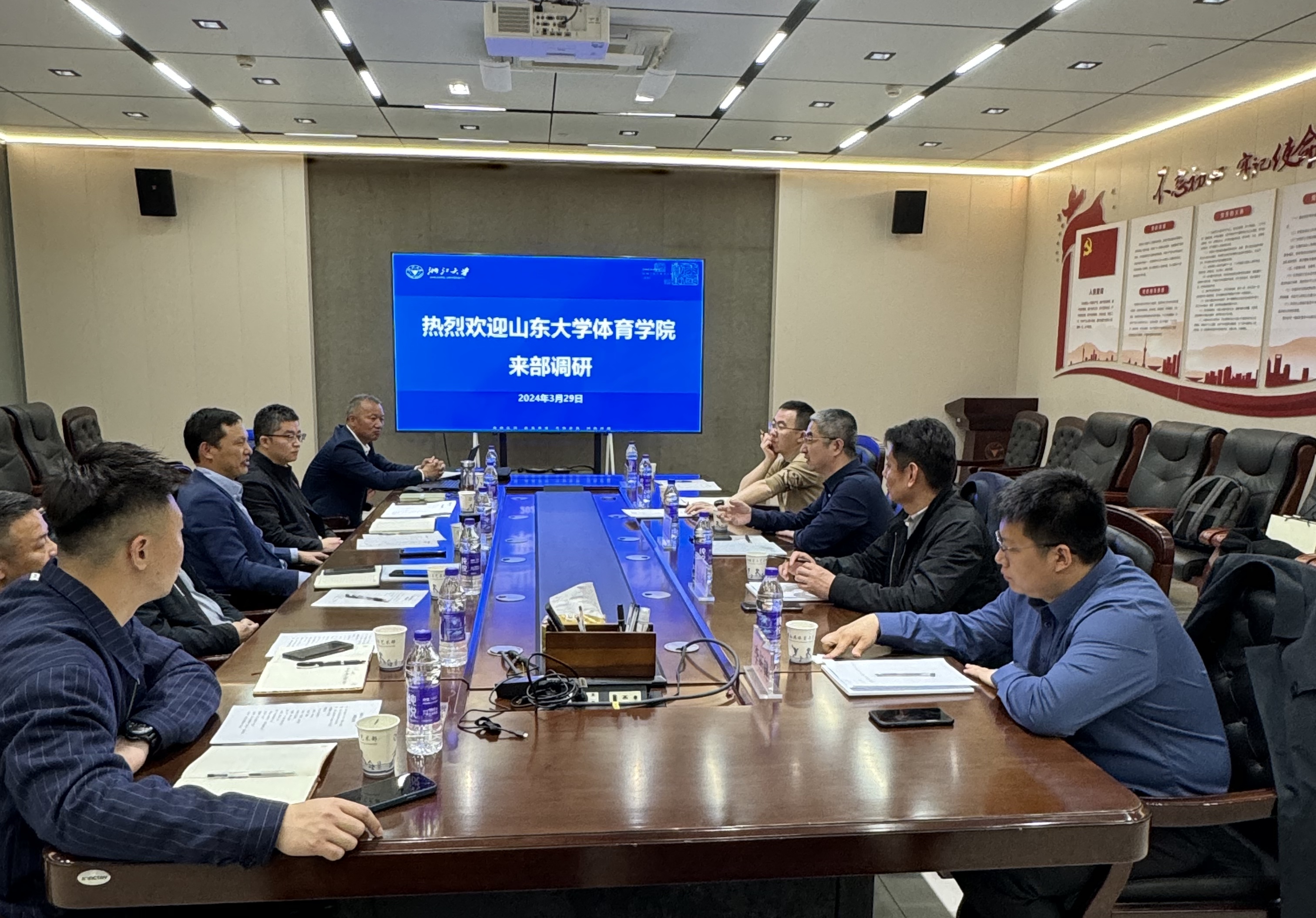 在浙江大学,浙大公共体育与艺术部党委副书记傅旭波、副主任陈发动向调研组全面介绍了浙江大学在体育教育教学运行机制、群众体育活动组织、学生体质健康监测、体育育人信息化、学校运动队建设、学校体育美育文化塑造等方面的特色亮点和创新性举措。双方还就推进学校体育教育教学改革、提升学校群众体育工作水平等多方面问题开展深入交流,并就下一步更好地加强人才培养和教学科研等多方面合作交流达成共识。
