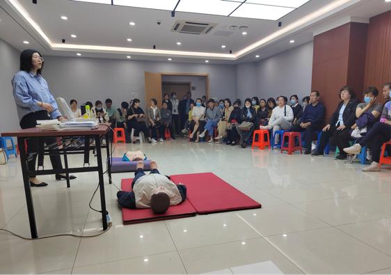 由AED设备厂家和校医院医护急救人员对在场人员进行AED使用以及心脏复苏技术指导,他们从实际案例出发进行深度剖析,并结合教学视频做了详细讲解。同时,结合实践,现场指导,规范技术动作,极大地提升了学习效果。全体人员认真听讲、积极交流,不仅提高了面对突发事件时自救互救能力,更增强了对生命的敬畏,培养了危机意识,有助于隐患排查和预防工作。