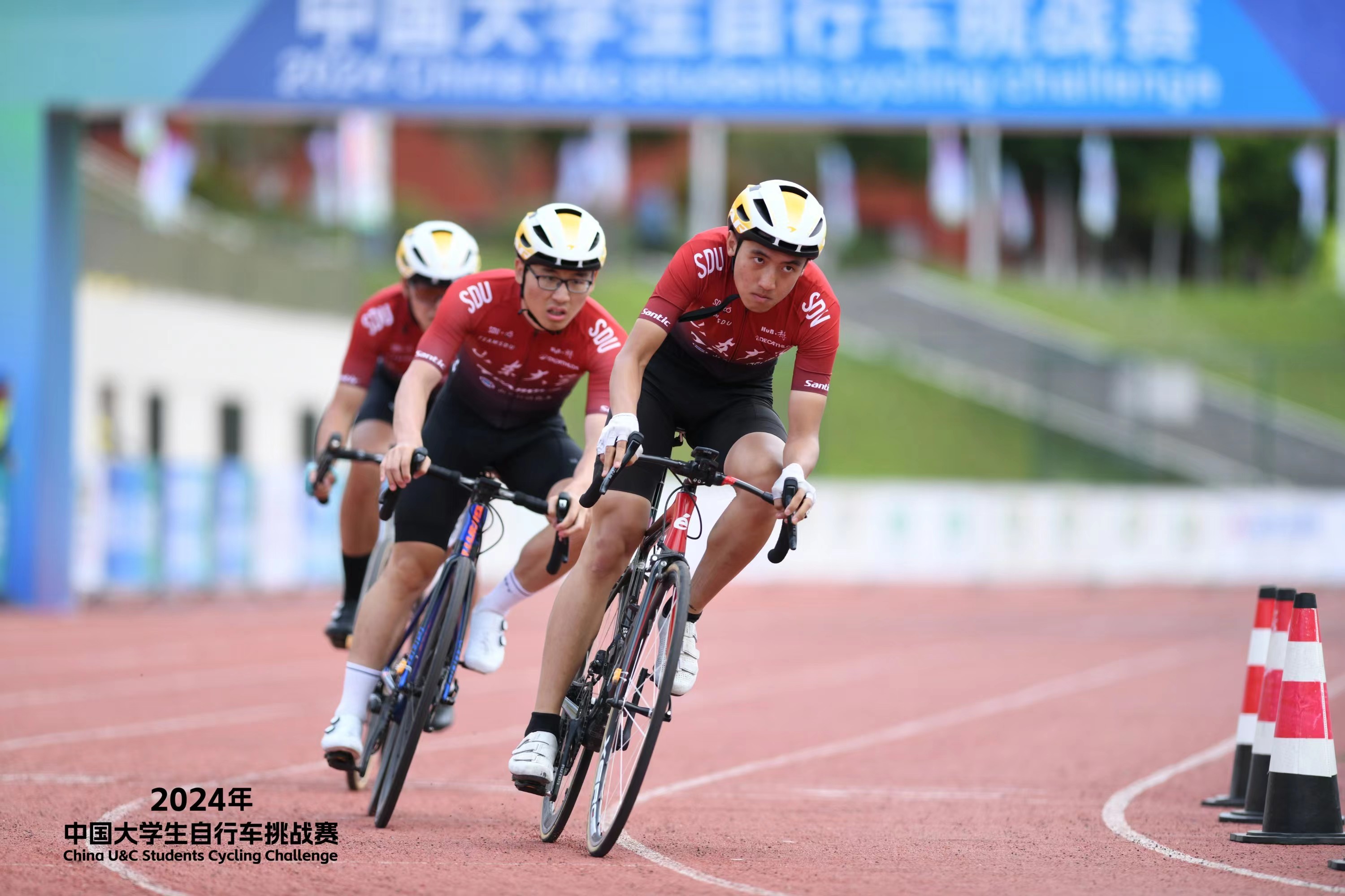 5月11日至13日,2024年中国大学生自行车挑战赛在贵州工业职业技术学院(清镇校区)举行。Beat365官方网站首次组建自行车队参加全国比赛,在本次比赛中展现优良竞技水平,在男子3KM场地计时赛和男子场地团体竞速赛中收获一枚个人银牌和一个团体亚军。