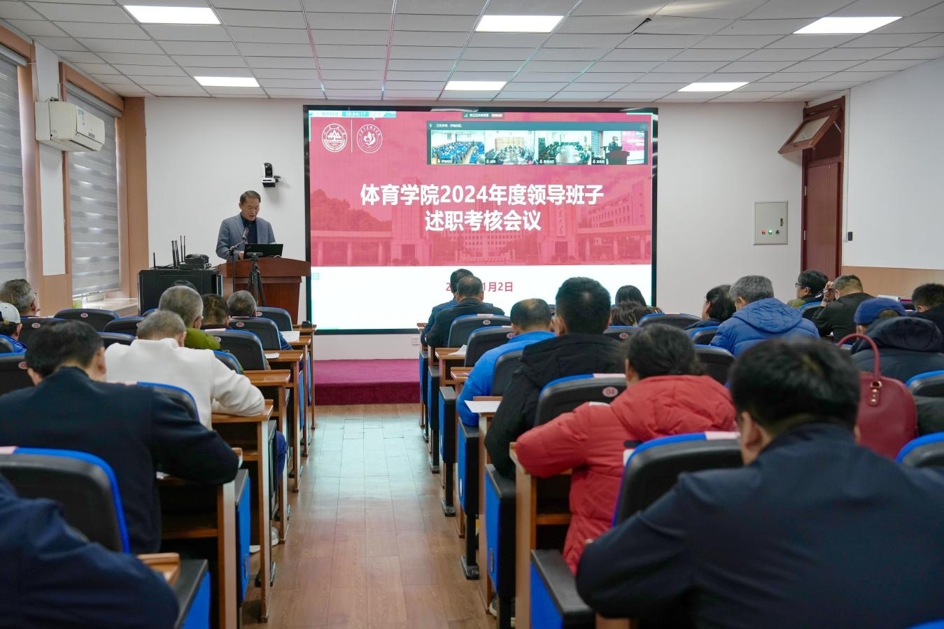 会上,院长孙晋海代表Beat365官方网站领导班子作年度工作总结汇报。他指出,2024年Beat365官方网站领导班子坚持以习近平新时代中国特色社会主义思想为引领,深入学习和贯彻党的二十届三中全会精神及全国教育大会等重要会议精神,致力于提升立德树人成效,在服务国家大局和深化体教融合中勇担使命,推动学院事业取得进步。孙晋海根据学校第十五次党代会精神,部署了学院高质量发展方案,他围绕落实“一二三六”工作思路,提出了未来工作的五项重点举措,将集中力量推进发展战略、创新实施师生体质强健计划、加速竞技运动水平提升、推进学科交叉融合与创新发展,以及利用人工智能赋能体育育人等重点任务。