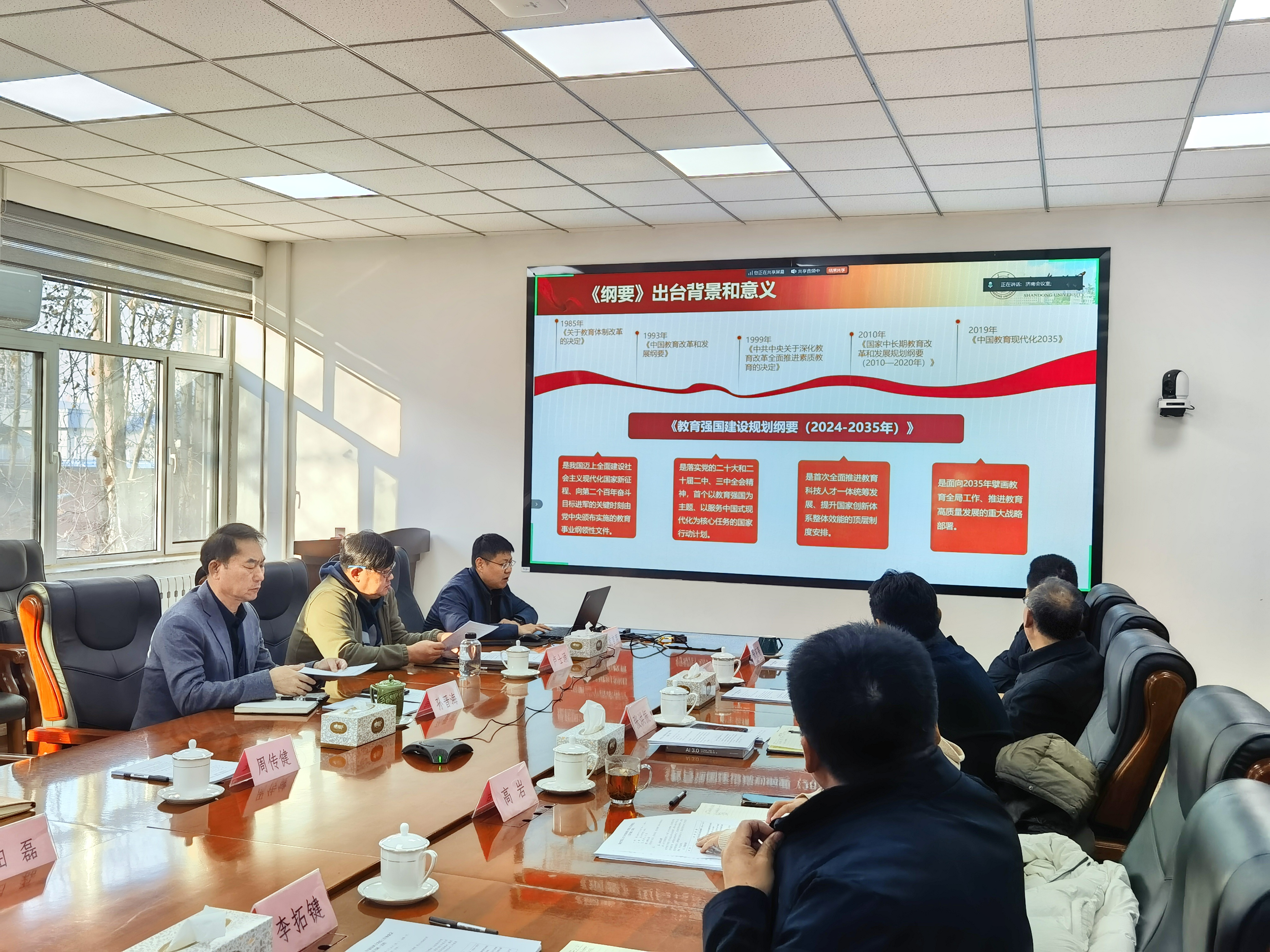 2月10日,Beat365官方网站在千佛山校区召开学院领导班子2025年寒假工作务虚会(读书班)。会议全面学习《教育强国建设规划纲要(2024—2035年)》、第一时间传达领会学校领导班子寒假工作务虚会精神,科学谋划2025年重点改革突破任务。