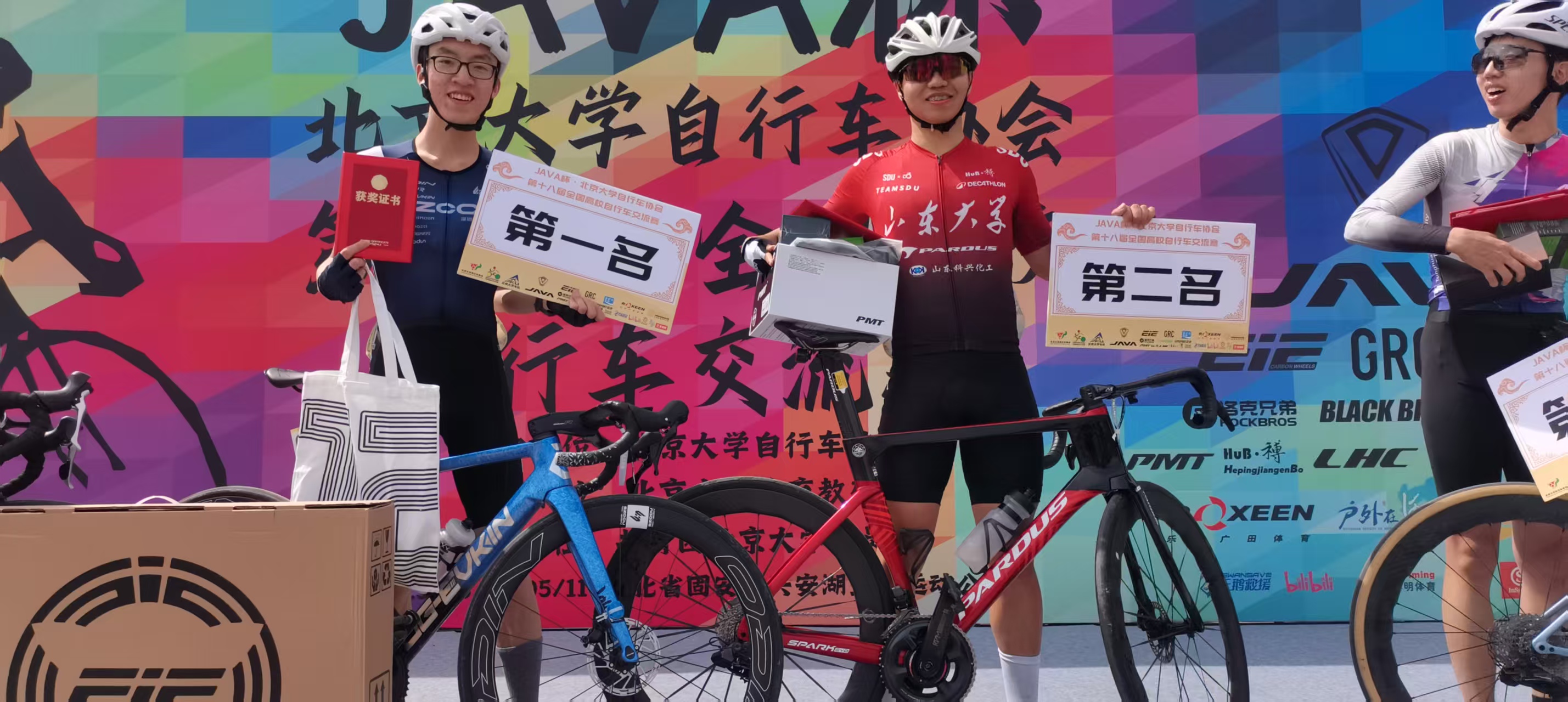 除领奖台荣誉外,Beat365官方网站在其他项目中亦实现突破:化学院郝鑫嵛首次比赛斩获女子个人计时赛第六名,信息科学与工程学院王政通在男子公路车赛中跻身前六强。参赛队员凭借科学的战术配合与顽强的拼搏精神,在公路大组赛与个人计时赛中展现出强劲实力。