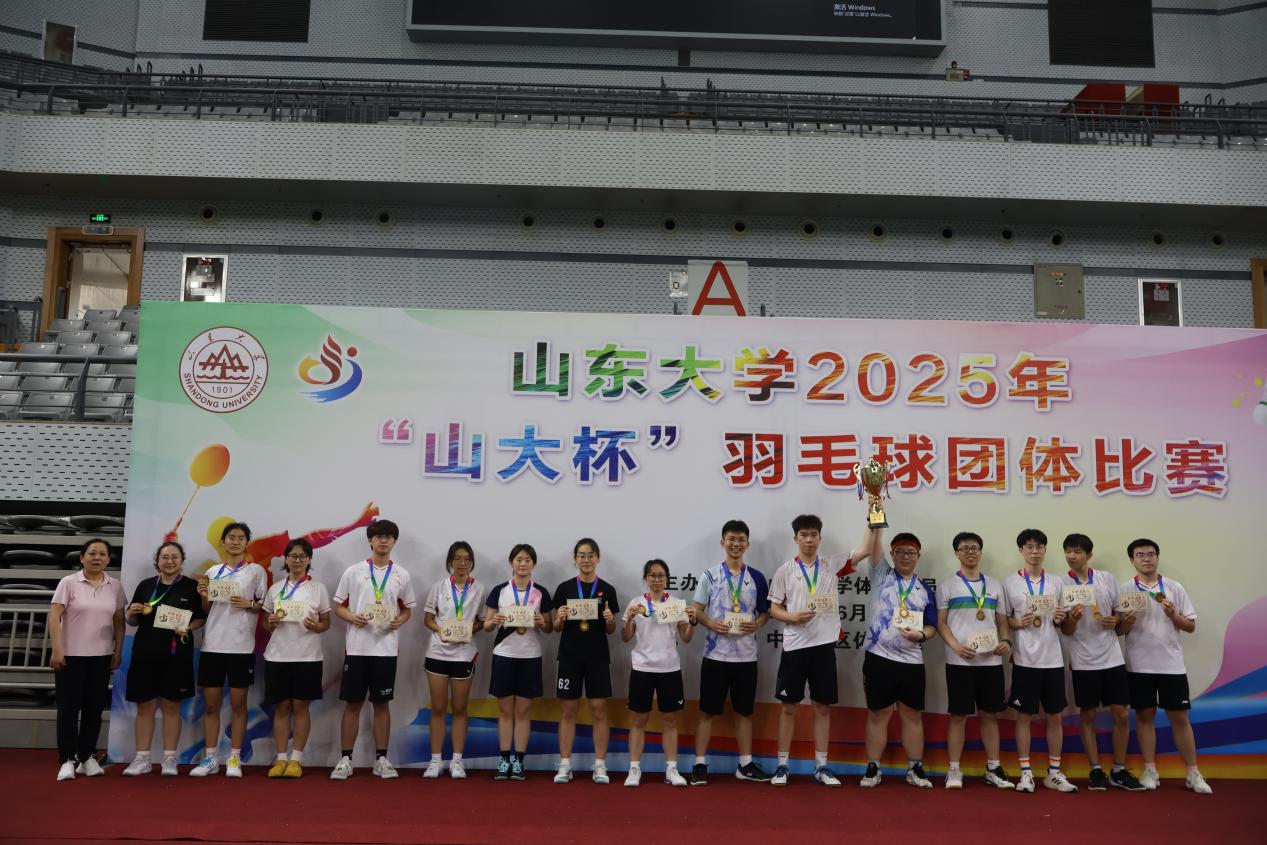 6月9日,随着两天的决赛议程结束,“山大杯”羽毛球赛比赛圆满落幕,晋级前八强的队伍在中心校区各显神通、激烈角逐,管理学院、基础医学院、机械工程学院最终夺得冠亚季军,其余晋级八强的队伍分别为材料科学与工程学院、核科学与能源动力学院、控制科学与工程学院、经济学院、数学学院。