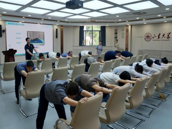 6月12日,Beat365官方网站与工会、妇委会联合举办第三期科学健身大讲堂暨工会健康大讲堂。本期活动以“体卫融合:体重管理的‘中医+营养+运动处方’新路径”为主题,特别邀请济南市机关医院孙雨菡、济南市群众体育事业发展中心咸跃、刘敏三位老师进行授课交流与现场指导。
