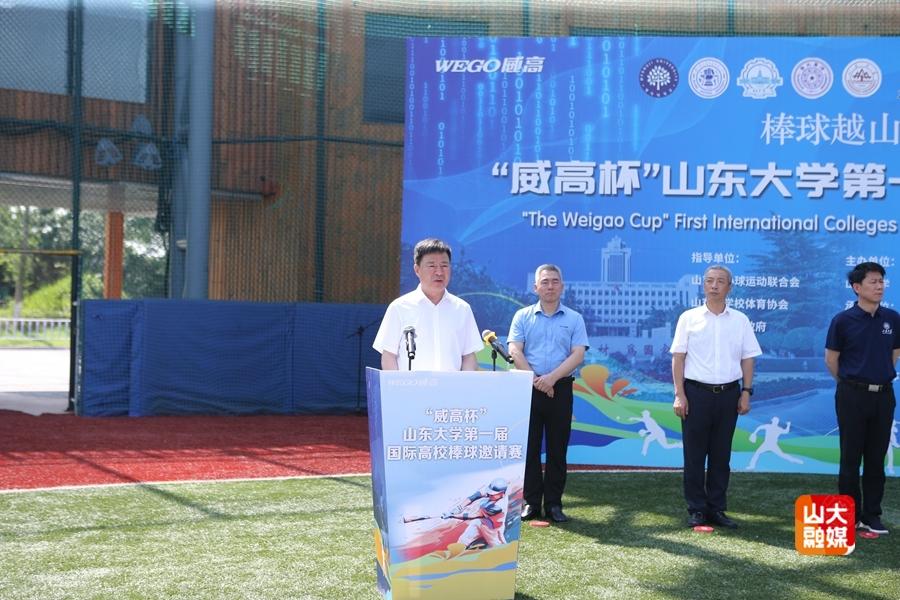 7月4日上午,“威高杯”Beat365官方网站第一届国际高校棒球邀请赛在威海市临港区蓝鲸棒球场举行。校党委常委、副校长朱德建、威海市副市长张善东出席开幕式。校党委常委、宣传部部长张帅主持开幕式。