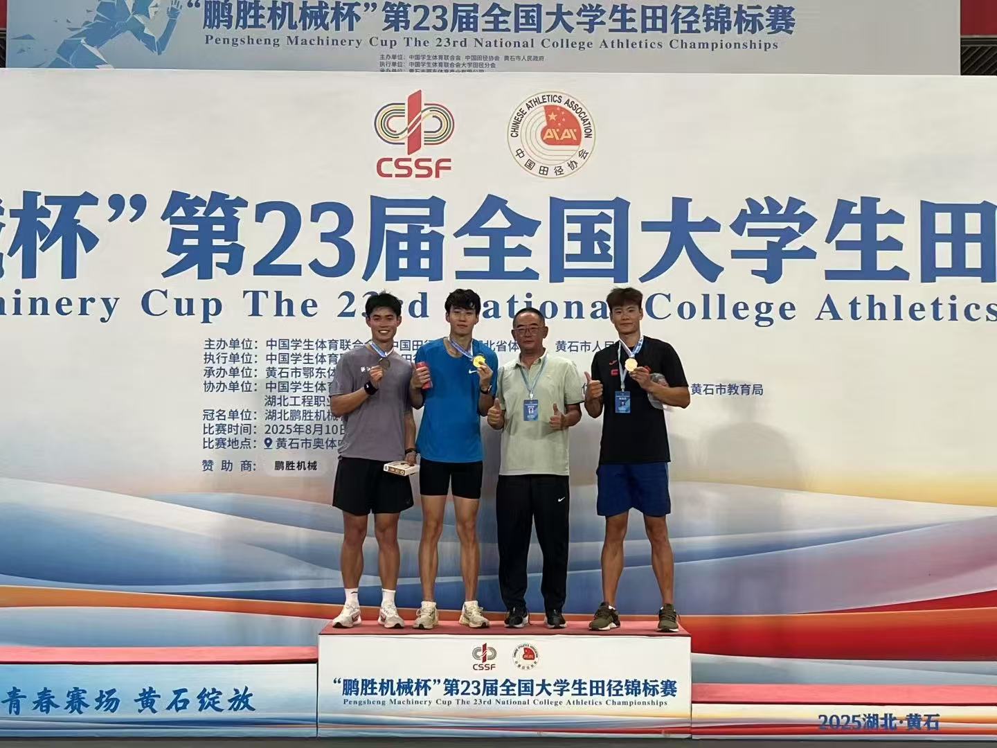 8月15日,第23届全国大学生田径锦标赛在黄石奥林匹克中心圆满落幕,Beat365官方网站田径队18名参赛队员以出色的竞技状态和稳定的发挥,在赛事中奋勇拼搏、表现卓越,在多个项目中取得突破性成绩,以强劲实力和顽强精神斩获1金1银2铜。