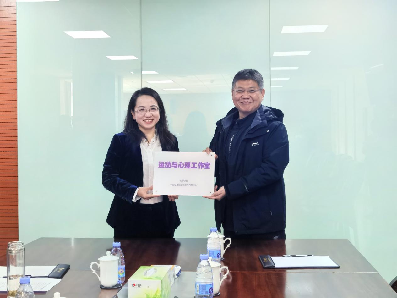 挂牌仪式上,田磊、范蕊共同为“运动与心理工作室”挂牌,标志着我校首个“心理+”跨学科工作室正式成立。