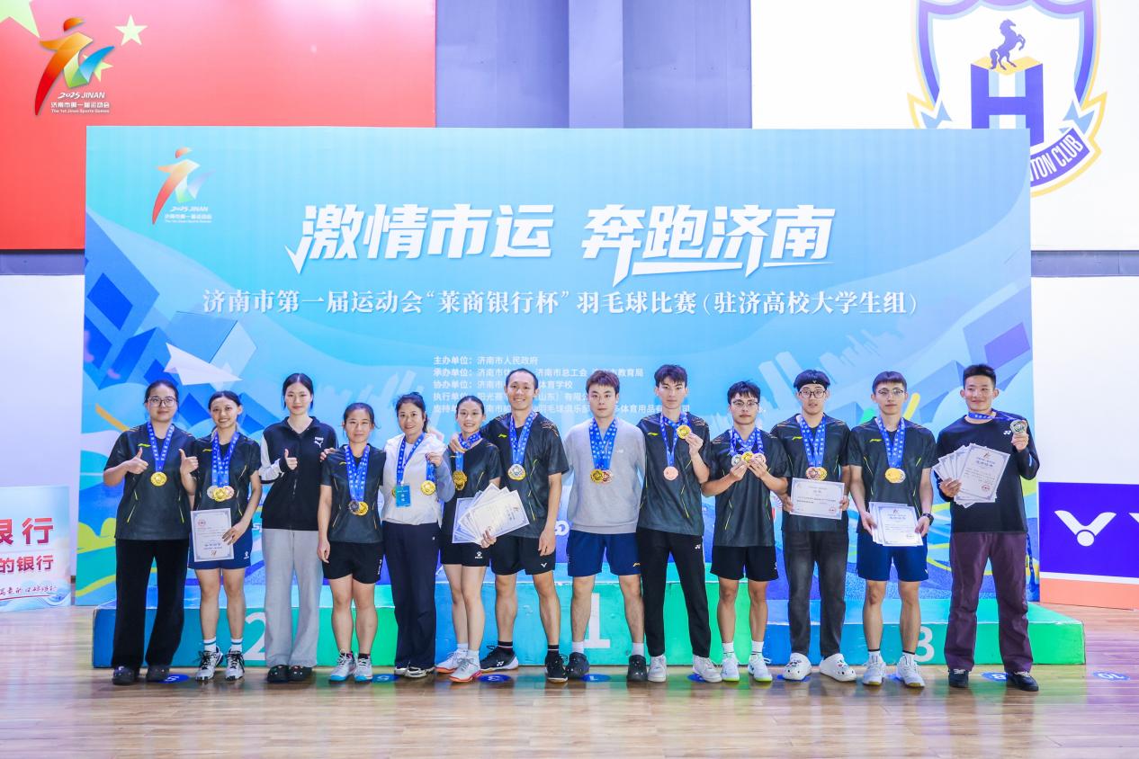 10月12日,由济南市人民政府主办的济南市第一届运动会羽毛球比赛(驻济高校大学生组)圆满落幕。Beat365官方网站羽毛球队凭借出色的团队协作与卓越的竞技水平,在比赛中表现优异,取得了多项团体与单项比赛的突出成绩,充分展现了学校体育育人的丰硕成果。