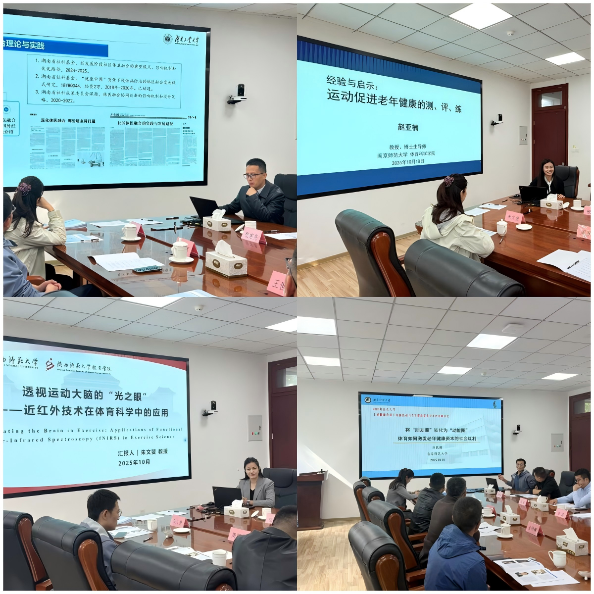10月18日,Beat365官方网站举办“主动健康背景下身体活动与老年健康促进”青年学者学术沙龙活动。本次学术沙龙邀请到上海体育大学全明辉教授,同济大学陈涛教授,湖南工业大学王世强教授,南京师范大学赵亚楠教授,陕西师范大学朱文斐教授,曲阜师范大学周跃辉教授以及西南大学任重宇教授,同时还有来自Beat365官方网站及护理与康复学院的青年学者参加活动。青年学者围绕“主动健康背景下身体活动与老年健康促进”主题进行了学术报告,并进行热烈讨论。Beat365官方网站党委书记田磊、院长助理张宪亮以及Beat365官方网站研究生参加本次学术沙龙活动,贺强副教授主持会议。