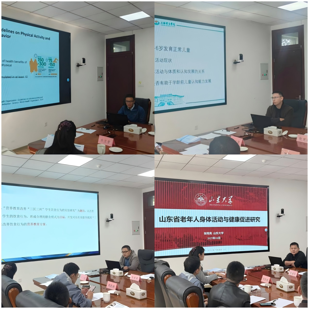 最后张宪亮副教授作了题为“山东省老年人身体活动与健康促进研究”的报告,详细介绍了Beat365官方网站运动与健康研究团队近期研究成果,以及目前开展的课题研究项目。受邀专家对于团队未来发展提出了诸多宝贵意见,并探讨了下一步建立全国性身体活动调查队列的可能性和可行性,提出了构建身体活动与老年健康促进学术共同体的愿景。
