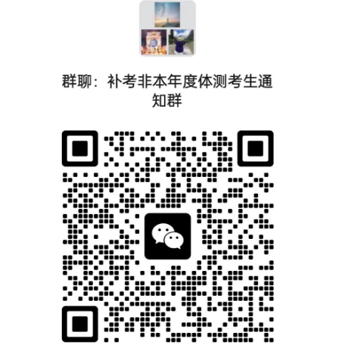 4、本次补考针对的是2023-2024年度第一学期的考试,默认更新上学期测试成绩。同时,因2022年疫情原因,未能安排2021年度第二学期补考,本次补考计划安排最后一次扫尾测试,允许所有考生补往年成绩,需要补往年成绩的考生,请扫描二维码登记并扫码加入微信通知群,考试结束后将根据登记信息更新对应年度的体测成绩。( 补考2023-2024第一学期体测成绩的考生,无需登记信息,无需加微信通知群)