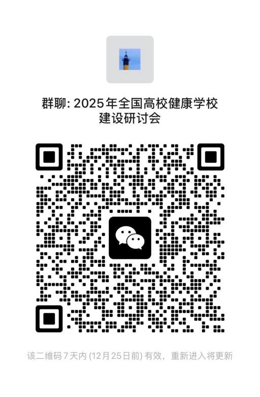 请全国健康学校各高校建设单位参会代表扫描以下二维码加入本次会议微信群,以便了解和反馈参会信息。若链接过期,请添加会务组倪老师 18553101100、于老师 15908955900。