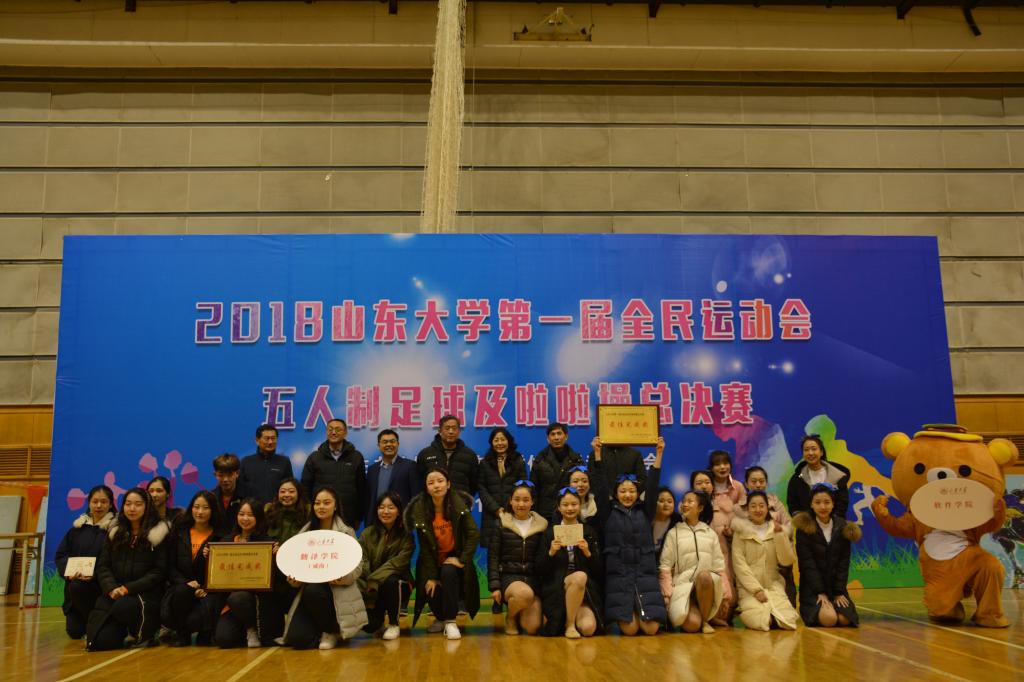 12月7日至9日,2018Beat365官方网站第一届全民运动会五人制足球及啦啦操总决赛在趵突泉校区体育馆举行。本次比赛由Beat365官方网站体育委员会主办、Beat365官方网站承办,闭幕式由Beat365官方网站副院长徐剑波主持,威海校区体育教学部主任张颖致闭幕词,威海校区体育教学部党总支书记叶军堂,Beat365官方网站正处级组织员任若强,党委副书记周庆华,威海校区翻译学院党委副书记常伟东等领导出席闭幕式并为获胜队伍颁发奖状证书。分别在济南、青岛、威海校区初赛中胜出的10支足球队以及8支啦啦操代表队参加了为期三天的总决赛。
