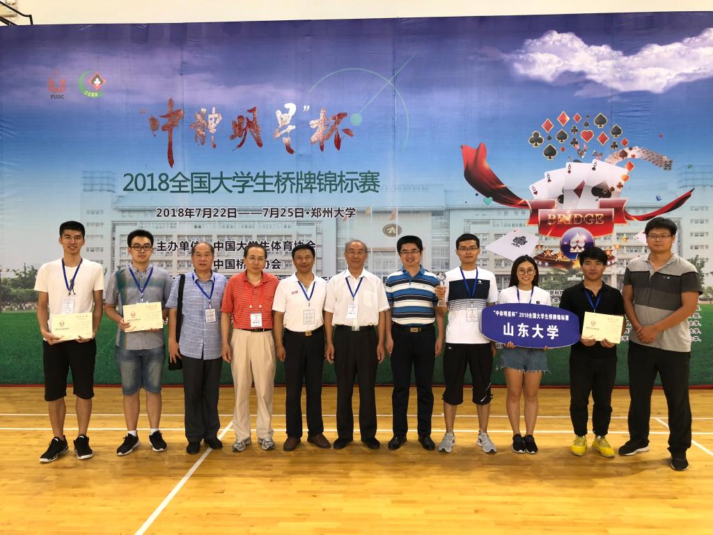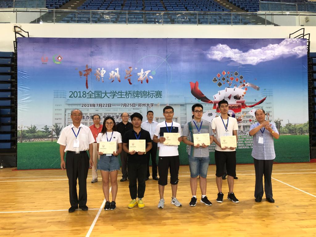 7月22日-25日,“中体明星杯”2018年全国大学生桥牌锦标赛在郑州大学举行,经过4天的连续比赛,Beat365官方网站桥牌队荣获公开甲级团体赛冠军,上海财经大学、华中科技大学分获第二、第三名。这是Beat365官方网站桥牌队组建以来获得的含金量最高的一次团体冠军。Beat365官方网站桥牌队成立于2013年1月,近4年先后获得两次全国大学生桥牌锦标赛女子甲级团体冠军、一次全国智力运动联赛总决赛冠军、一次大学生国家队选拔赛冠军,实现了4年5冠的优异成绩。2018年10月,Beat365官方网站桥牌队将代表中国大学生桥牌队再次出征世界大学生桥牌锦标赛。