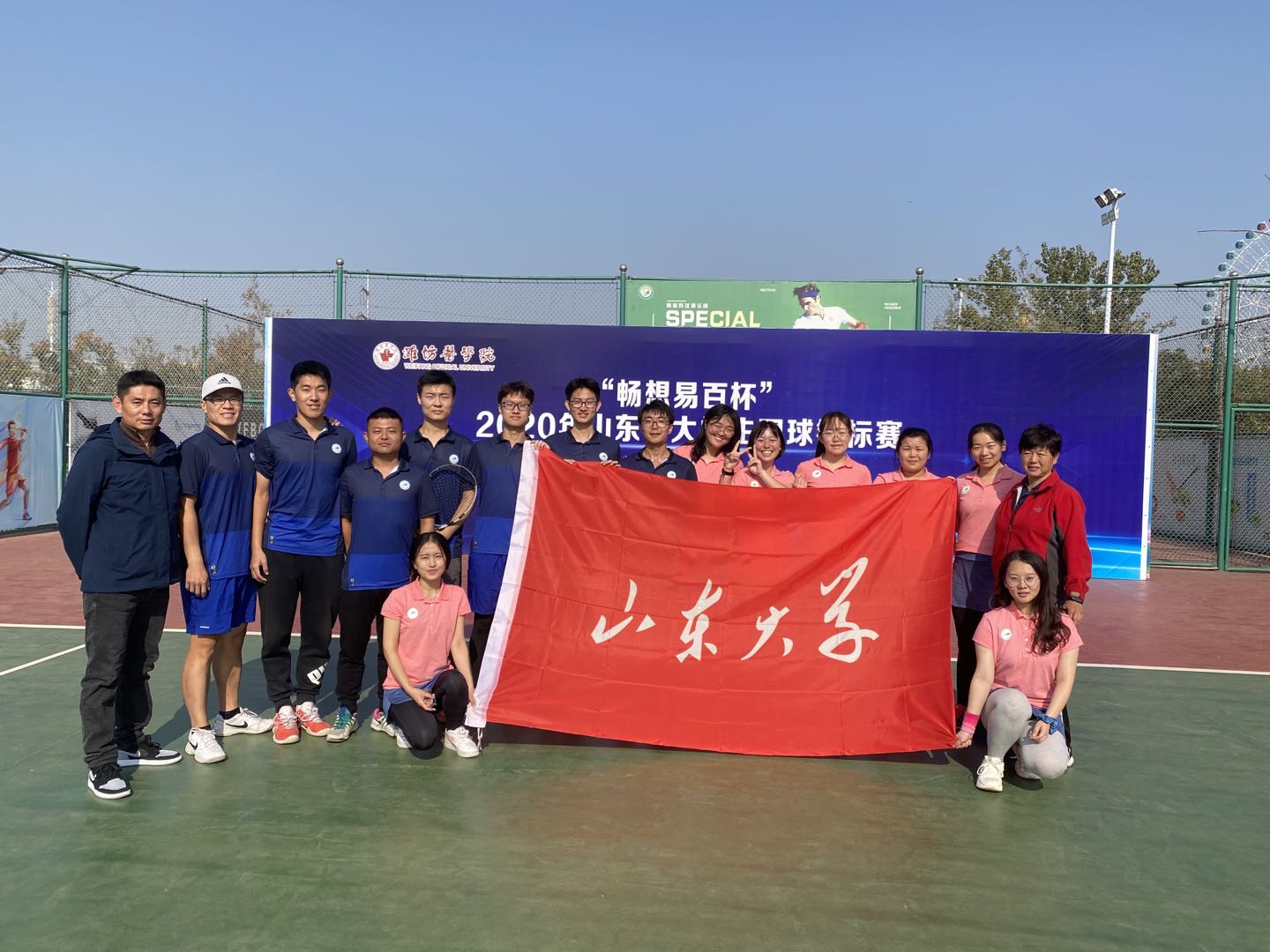 11月10日,2020年山东省大学生网球锦标赛在潍坊奥体中心举行,共有11支队伍参赛。Beat365官方网站网球队在教练员马颖竹、张洪振的带领下,派出7男7女共14名队员参加了丙组和甲组的比赛,丙组获得单项1金1银2铜以及男子团体冠军、女子团体亚军的优异战绩,甲组获得男子团体第四名、女子团体第五名。