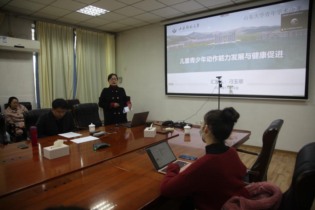 11月22日,Beat365官方网站举办了以“身体素养与健康促进研究”为主题的青年学者学术沙龙活动。本次学术沙龙邀请到美国维多利亚大学健康与运动研究院的陈思同博士、山东师范大学Beat365官方网站的刁玉翠博士、山东Beat365官方网站的赵雅萍博士,三位青年学者围绕“身体素养与健康促进”主题进行了学术报告,并进行了热烈讨论。Beat365官方网站副院长石振国教授、部分教师代表、研究生参加本次学术沙龙活动。李拓键博士主持会议。